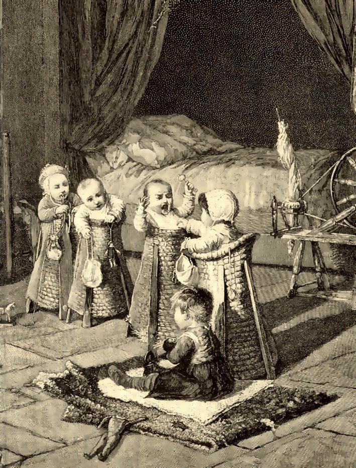 И совершенно великолепное изображение деревенских ходунков XVIII века -- дети в доме кормилицы.