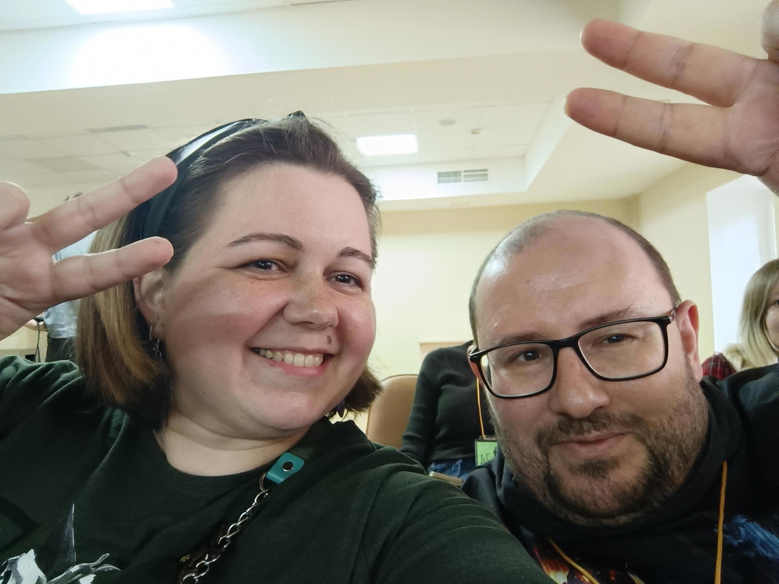 Мой личный мем Роскона – то, что примерно каждый первый сказал нам с Юлей Жуковой, автором «Замужа с осложнениями», как мы похожи. Кто-то принимал Юлю за меня. Возможно, мы двойняшки, разлученные в детстве) Мы подумали, что это прекрасный повод когда-нибудь написать в соавторстве.