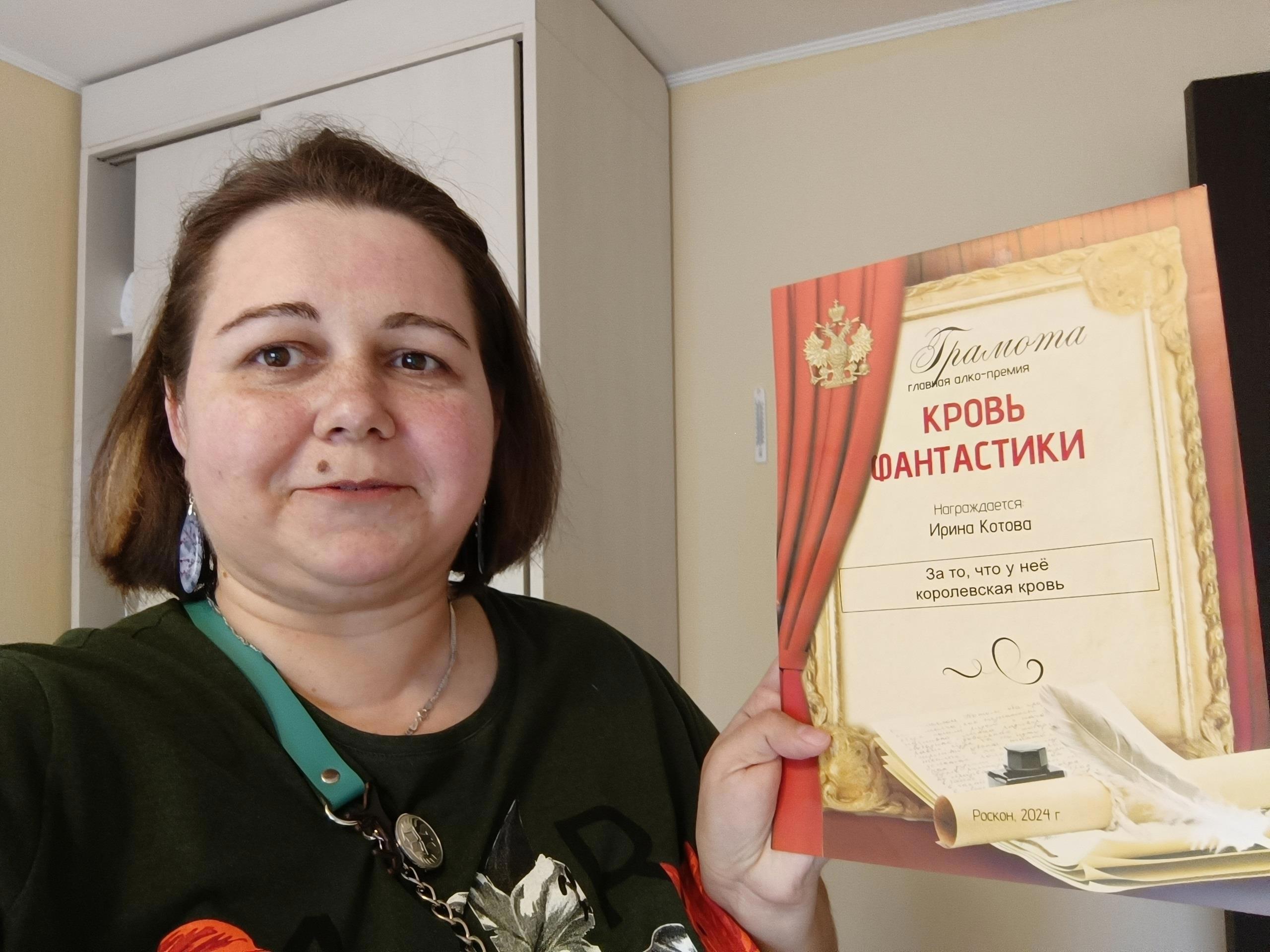 Сначала Антон Карелин и Александр Котобус Горбов вручили мне грамоту премии «Кровь фантастики».