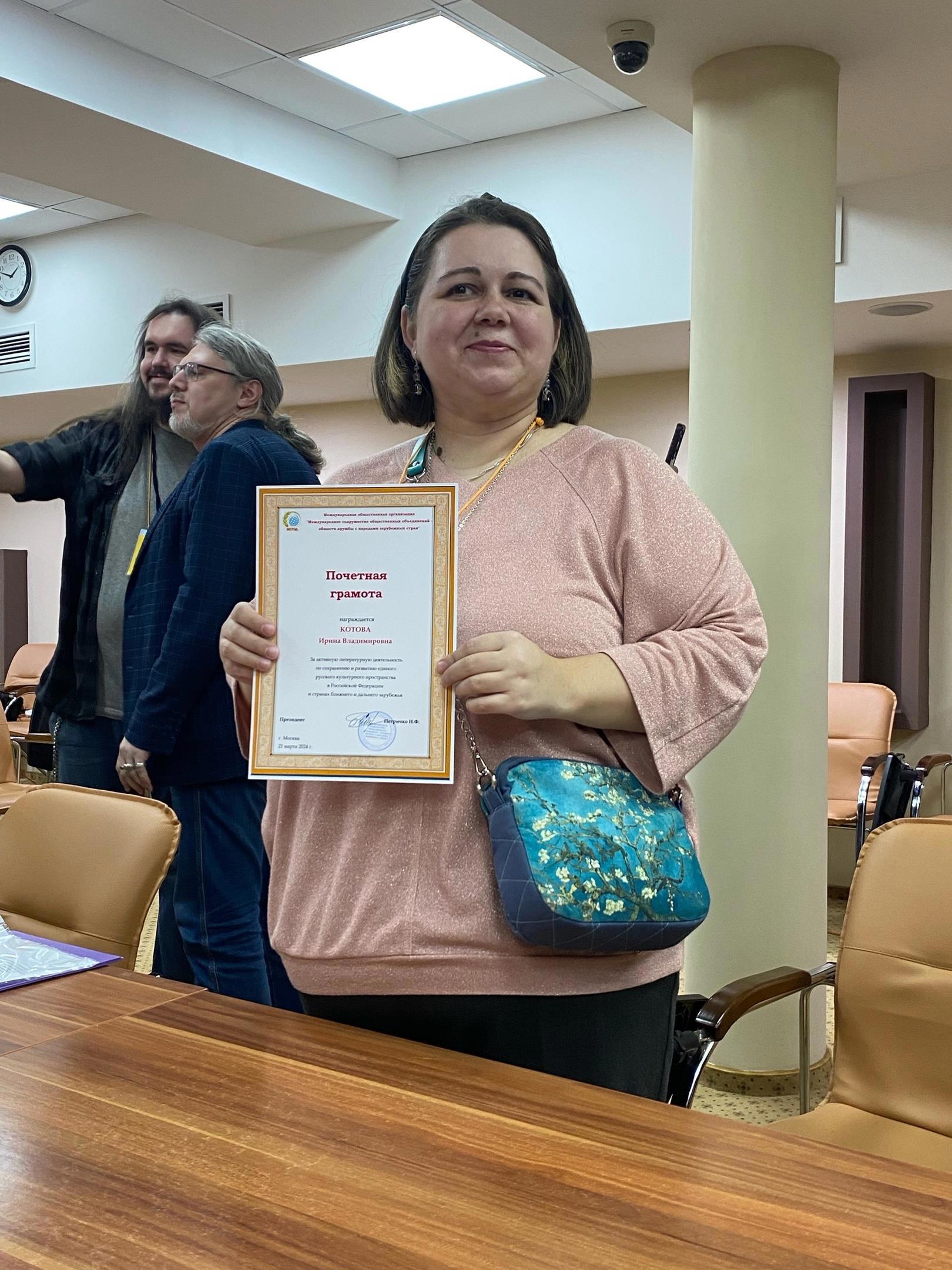 А после секции ромфанта, про которую я еще расскажу, Виталий Иванов и Татьяна Осинская, председатели клуба «Книжная среда», вручили мне билет Союза Литераторов России и грамоту за активную деятельность по продвижению русскоязычной литературы. И я готова ее продвигать дальше))