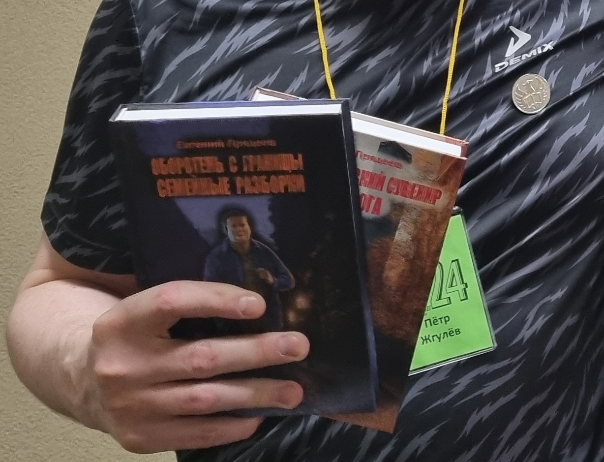 Здесь меня перехватил Евгений Прядеев и подарил свои книги с автографами - как обещал несколько лет назад. Было очень приятно. Наше совмеатное фото выкладывать не буду, но самих книг - можно.