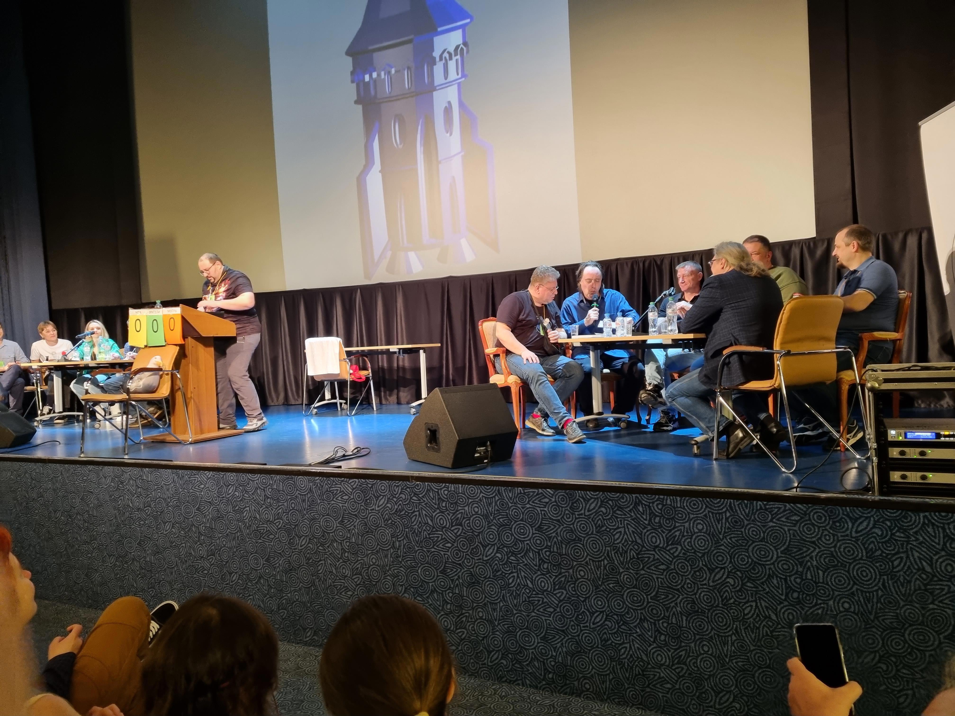 Вообще, Антон Карелин - великолепный ведущий, прям вообще огонь всё подготовил. И, спойлер, именно он и взял главный приз фестиваля - золотой Роскон. Откровенно говоря, задача перед ним стояла очень сложная: не только подобрать вопросы, но и провести игру честно и никого не обидеть.