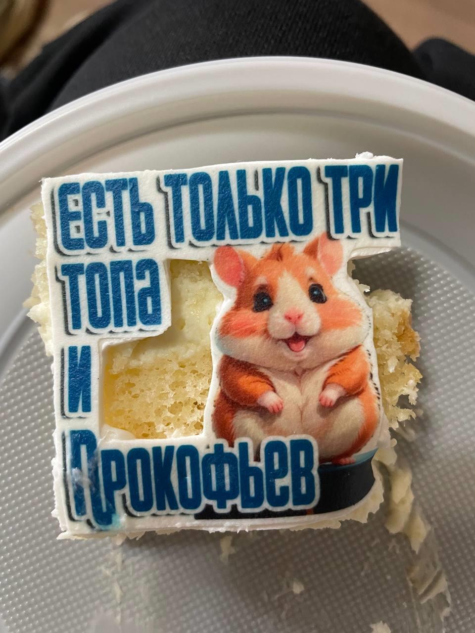 Попутно отметили день рождения Василия Маханенко с невероятным тортом и печеньками, на одной из которых неожиданно оказалась знакомая фамилия:
