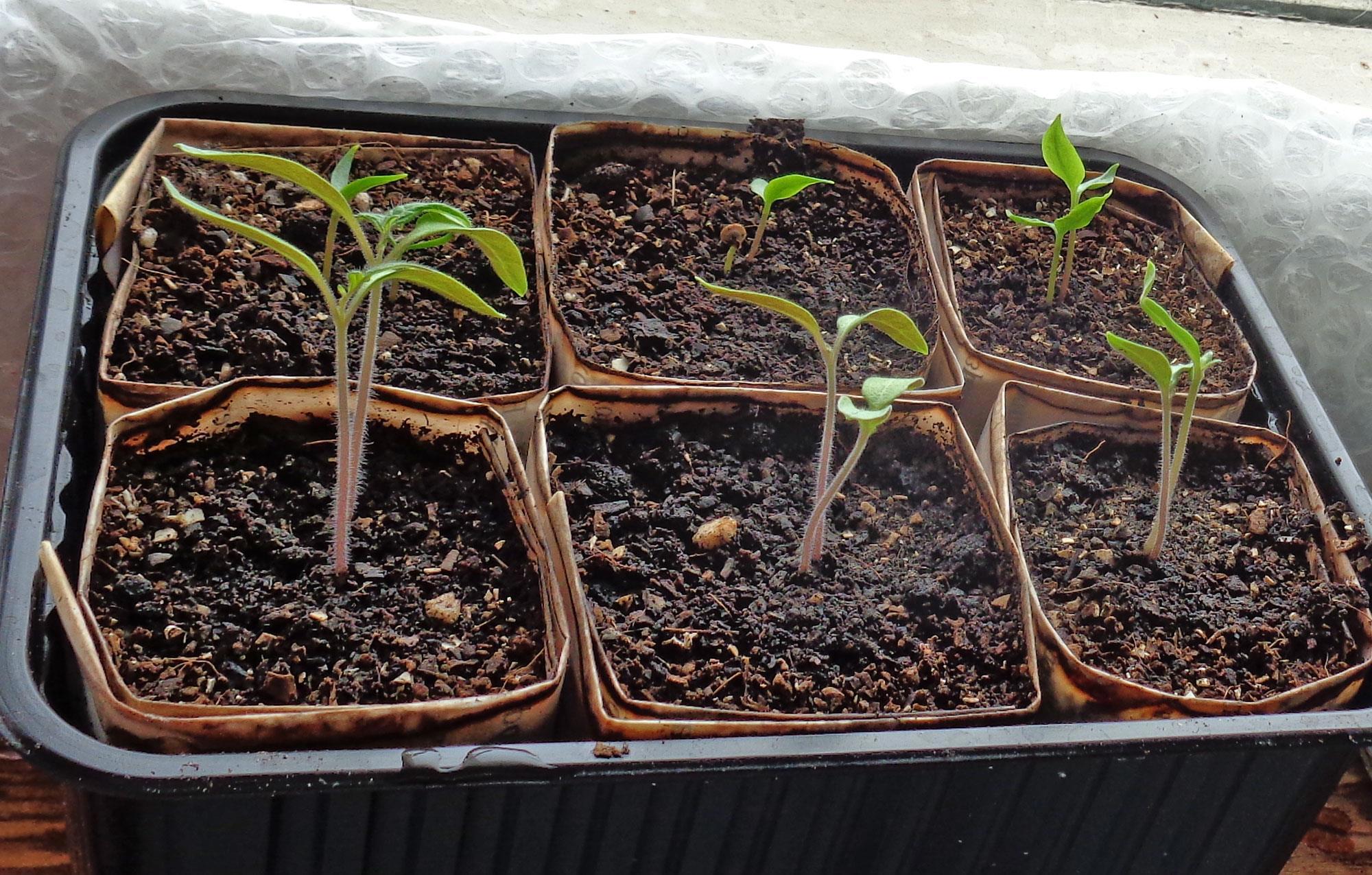 Помидоры и перец Рамиро взошли наконец. Солнышка им мало. У нас то гроза, то снег за окном...
