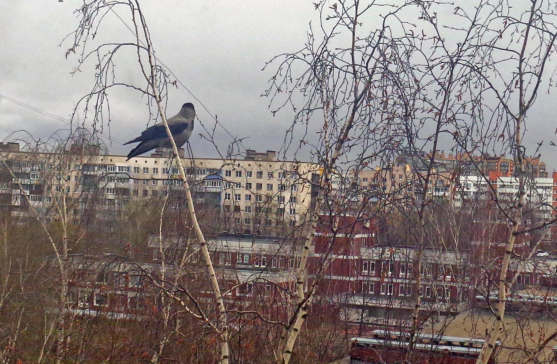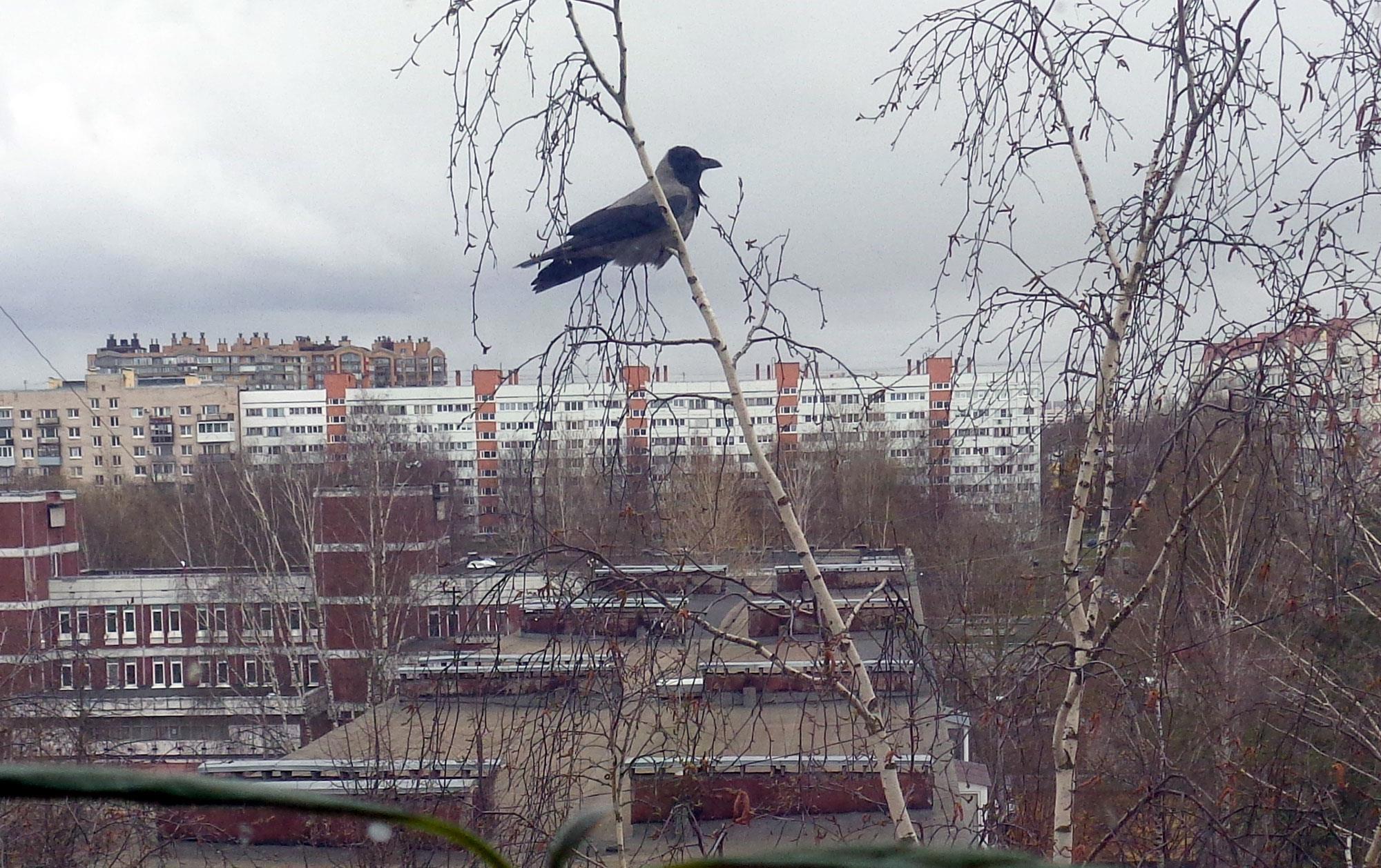 На самом деле, вороны за окном у меня постоянно "пасутся". Привыкли уже. Иногда прилетают огромные как гуси чайки, но они всегда появляются внезапно. И куда-то делась "подружка" моего Кота - ворона с подбитым крылом. Несколько лет занимала свой почётный пост караульщика напротив окон, а этой весной исчезла. Наверное, съел кто-нибудь. Вместо неё теперь эта сидит.
