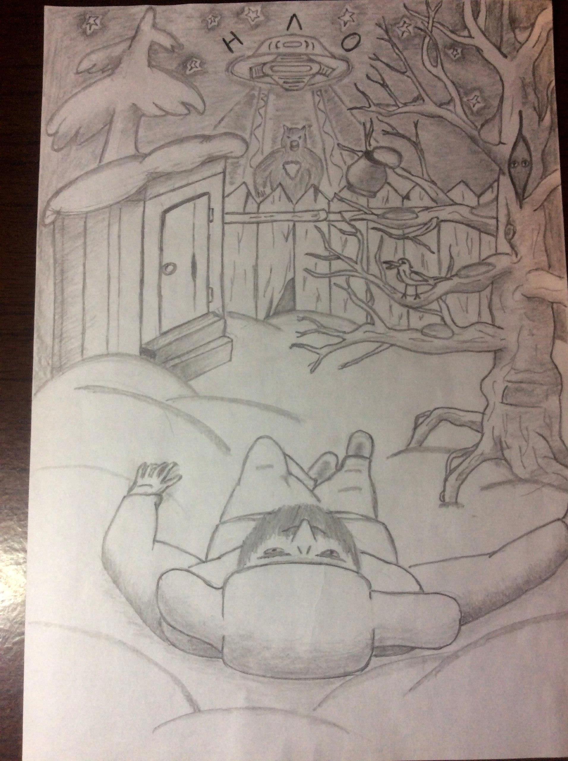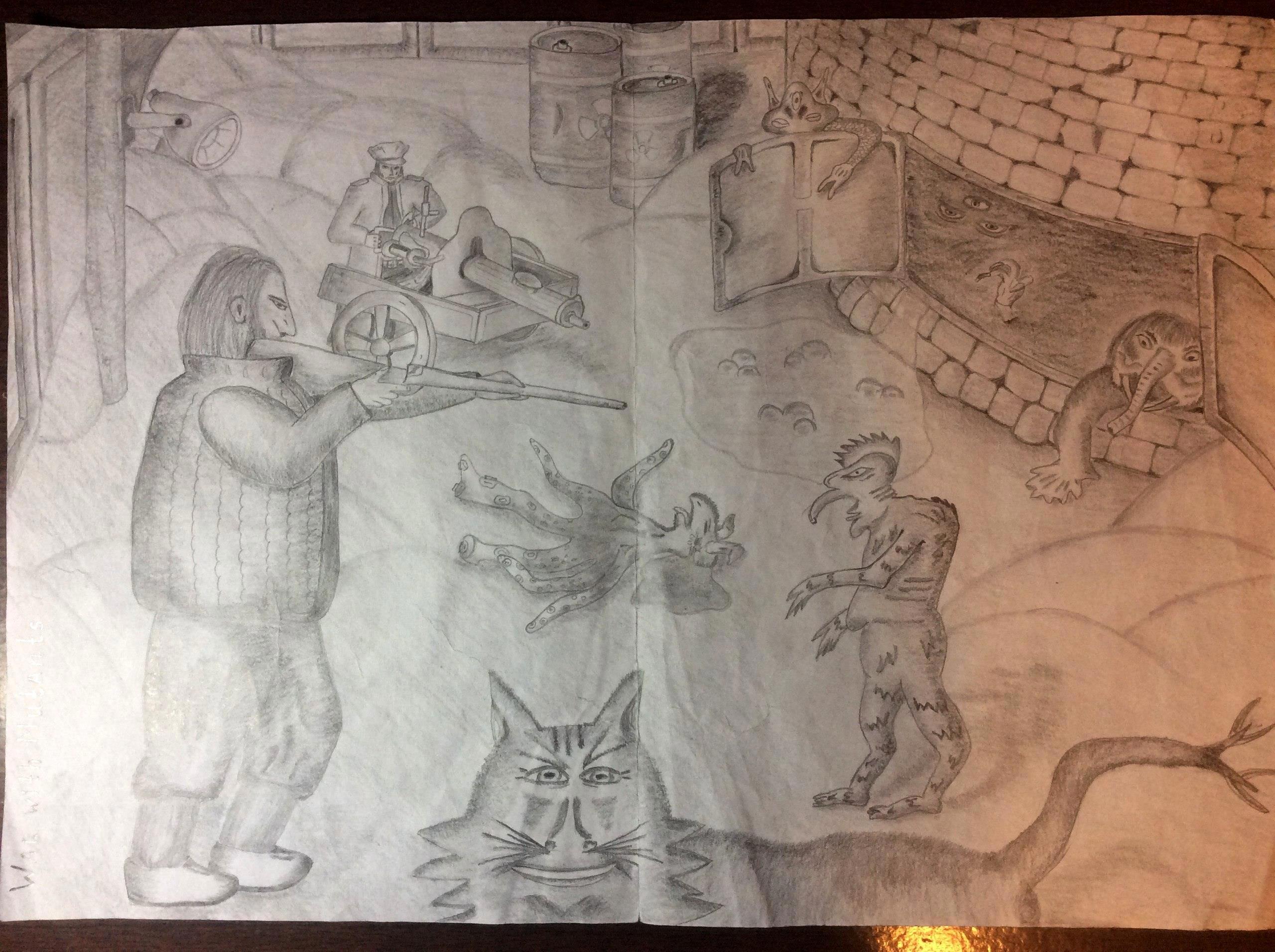 Так, несколько лет назад совершенно незнакомый человек, Алексей Мудрогин, прислал мне вот такие забавные авторские иллюстрации к рассказу, к каждой из 9 его глав: