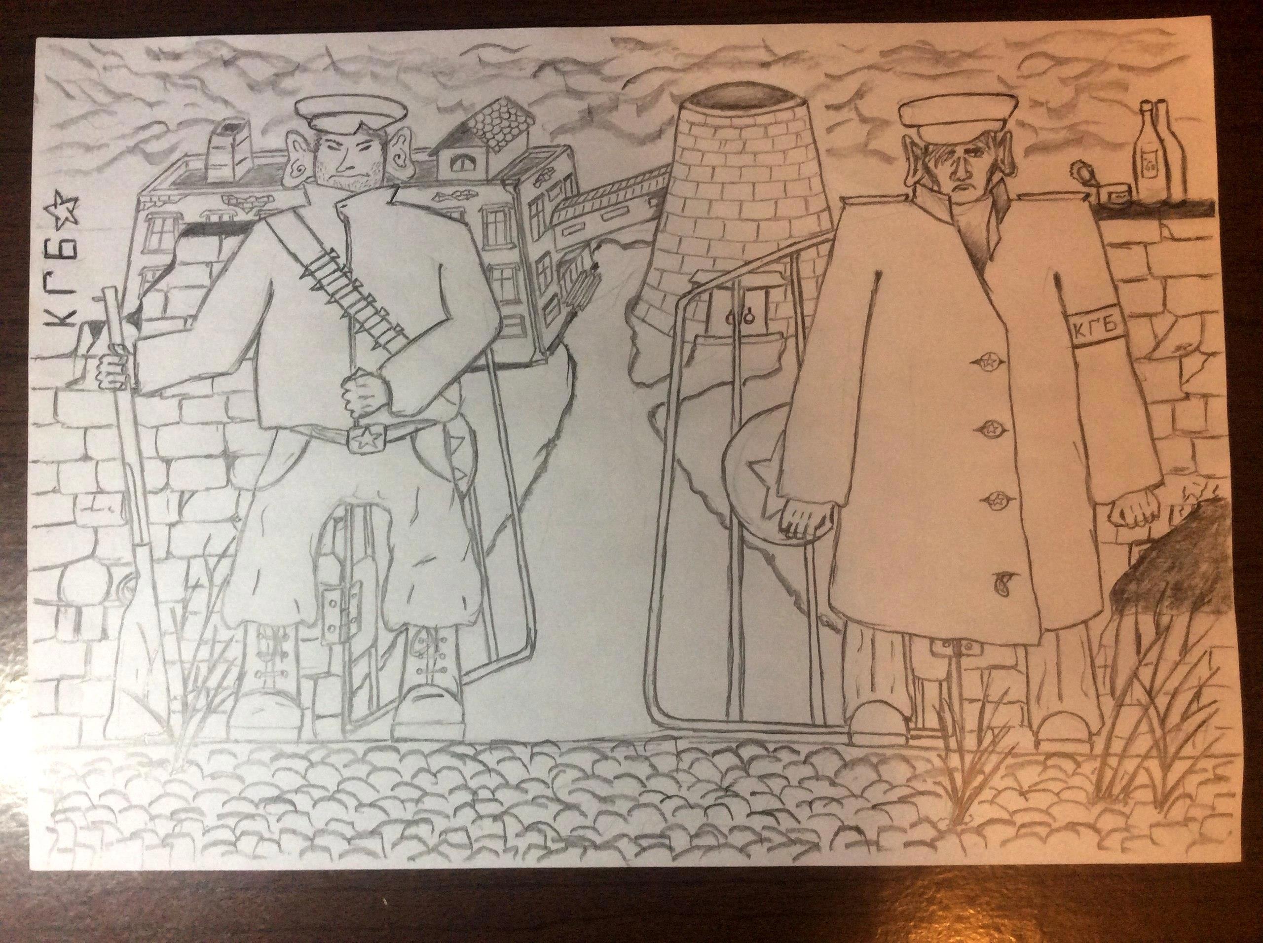 3. ПолитзаключённыеУ огромных ржавых ворот станции, покрашенных в грязно-зеленый цвет, стояли два сотрудника КГБ в круглых фуражках. КГБ-исты единственные из жителей Сибирска не носили шапок-ушанок, потому что не положено, и многие были наполовину глухими – уши не выдерживали холода.