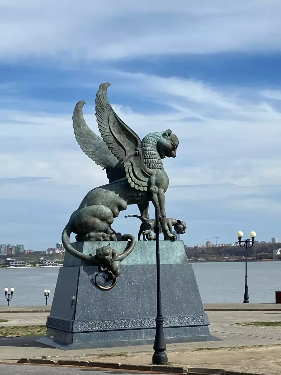Котики у дворца бракосочетаний. Это грифон, и судя по всему, местные грифоны не несут яйца, как классические: