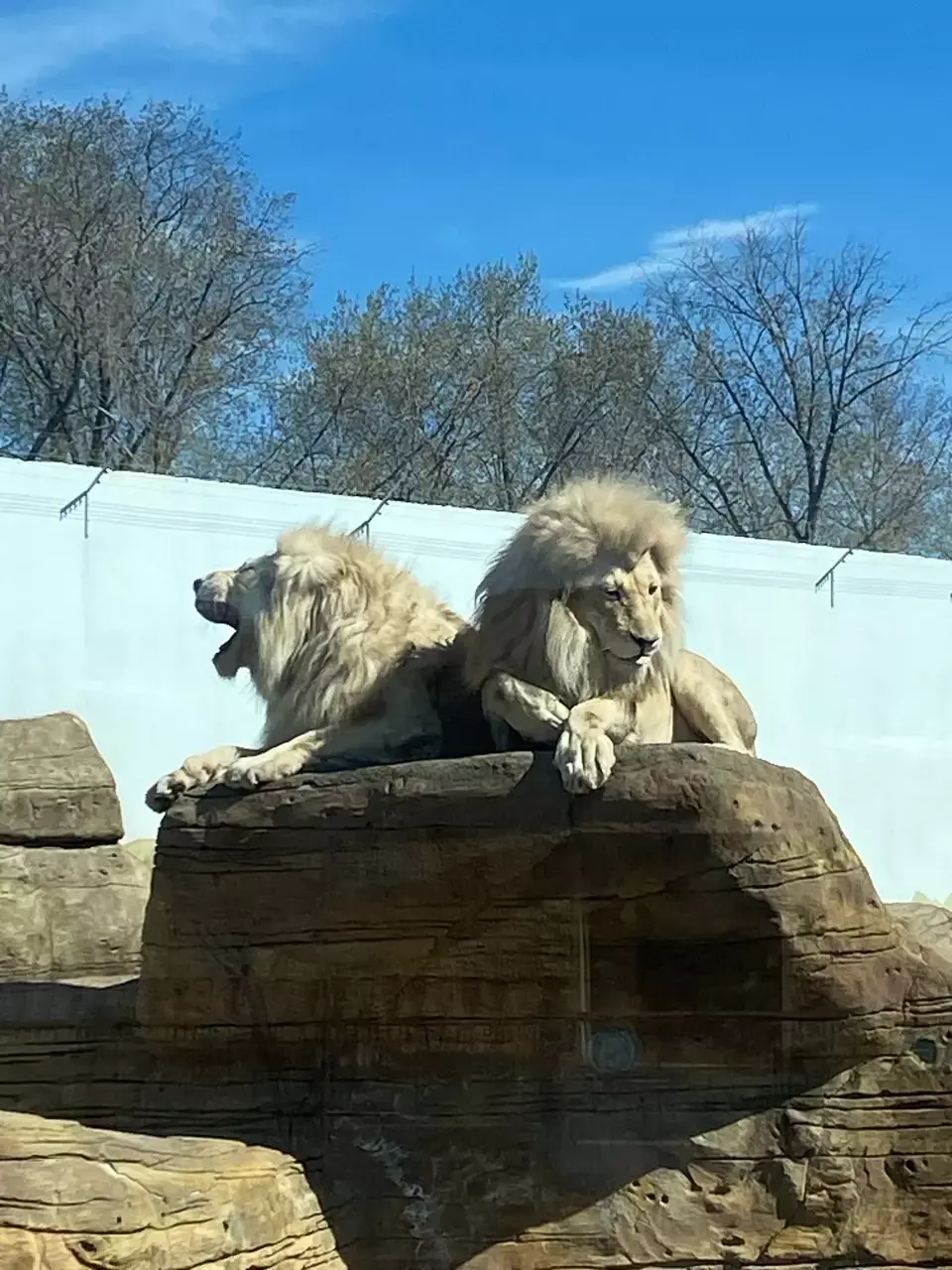 Котики в зоопарке. Примерно раз в полчаса меняются на этом камне. Прежде чем начать выталкивать напарника, примерно минуту тусят вдвоём: