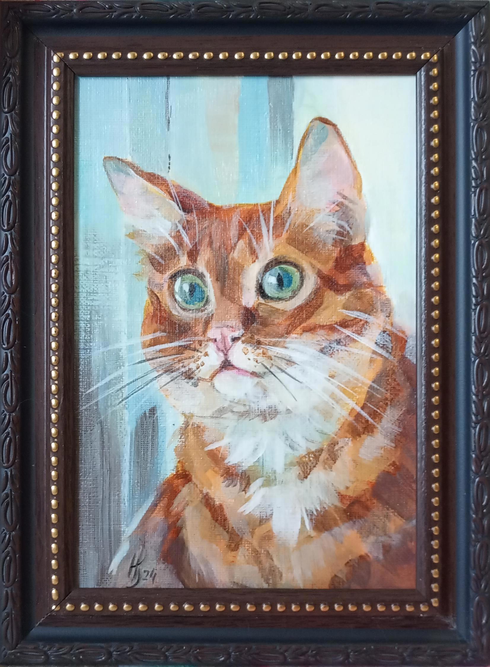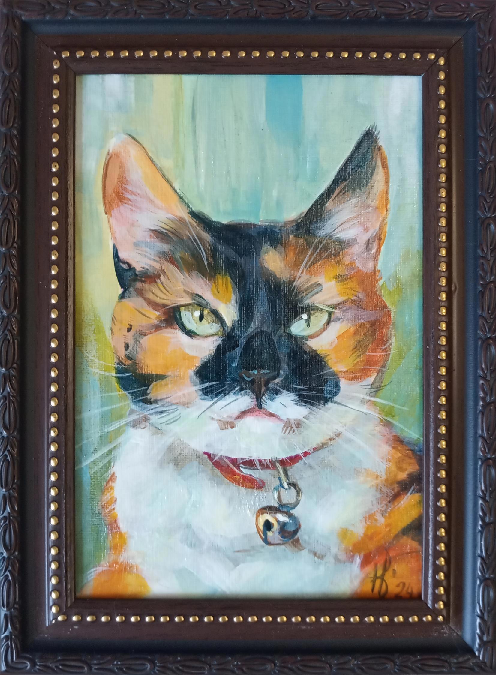 Три портрета весенних котов, 10*15 см, даже с почти одинаковыми рамочками, простенькими, но им подходит. Конечно, залакированы, чтобы можно было не пользоваться бликующими стеклами в рамах.