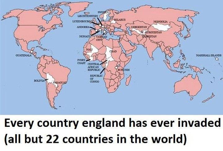 Страны куда вторгалась Англия помечены розовым.