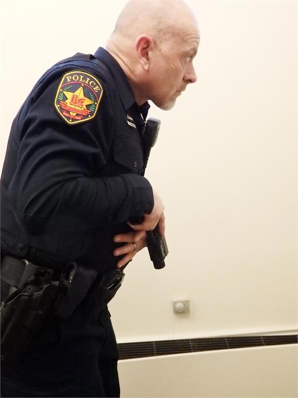 Шаг правой ногой с одновременным выносом оружия на цель, выстрел. Попал довольно близко к центру листа, а я не так плохо стреляю как думал.