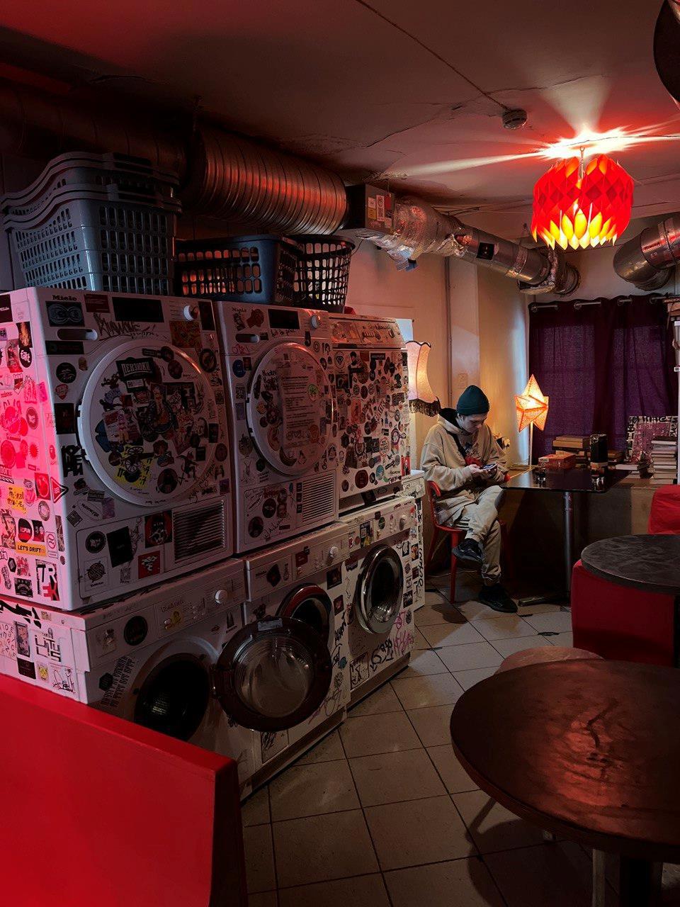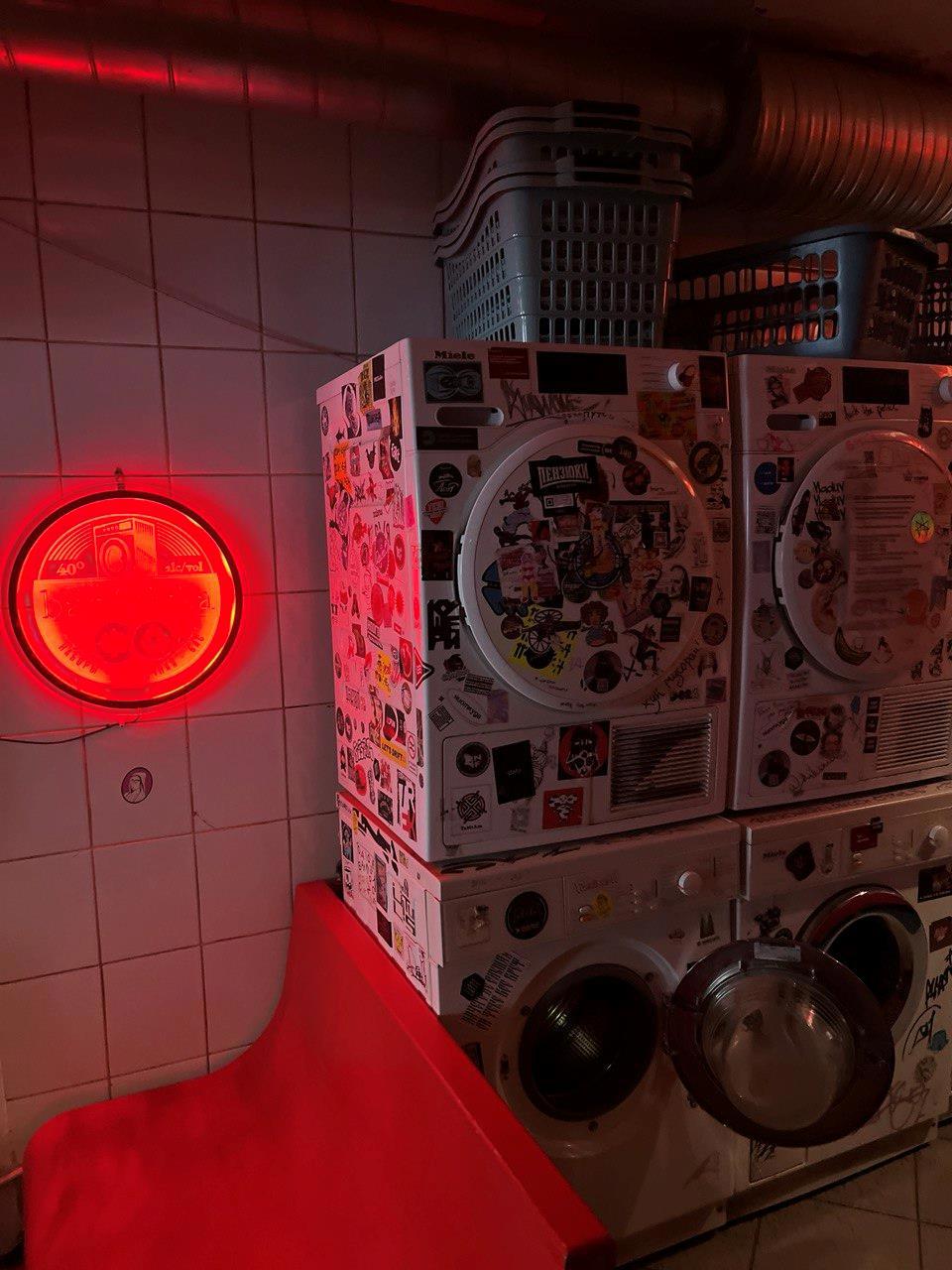 В интерьере используются стиральные машинки и сушилки, а в меню такие шоты как "Стирка 40 градусов", "А ты точно продюсер".