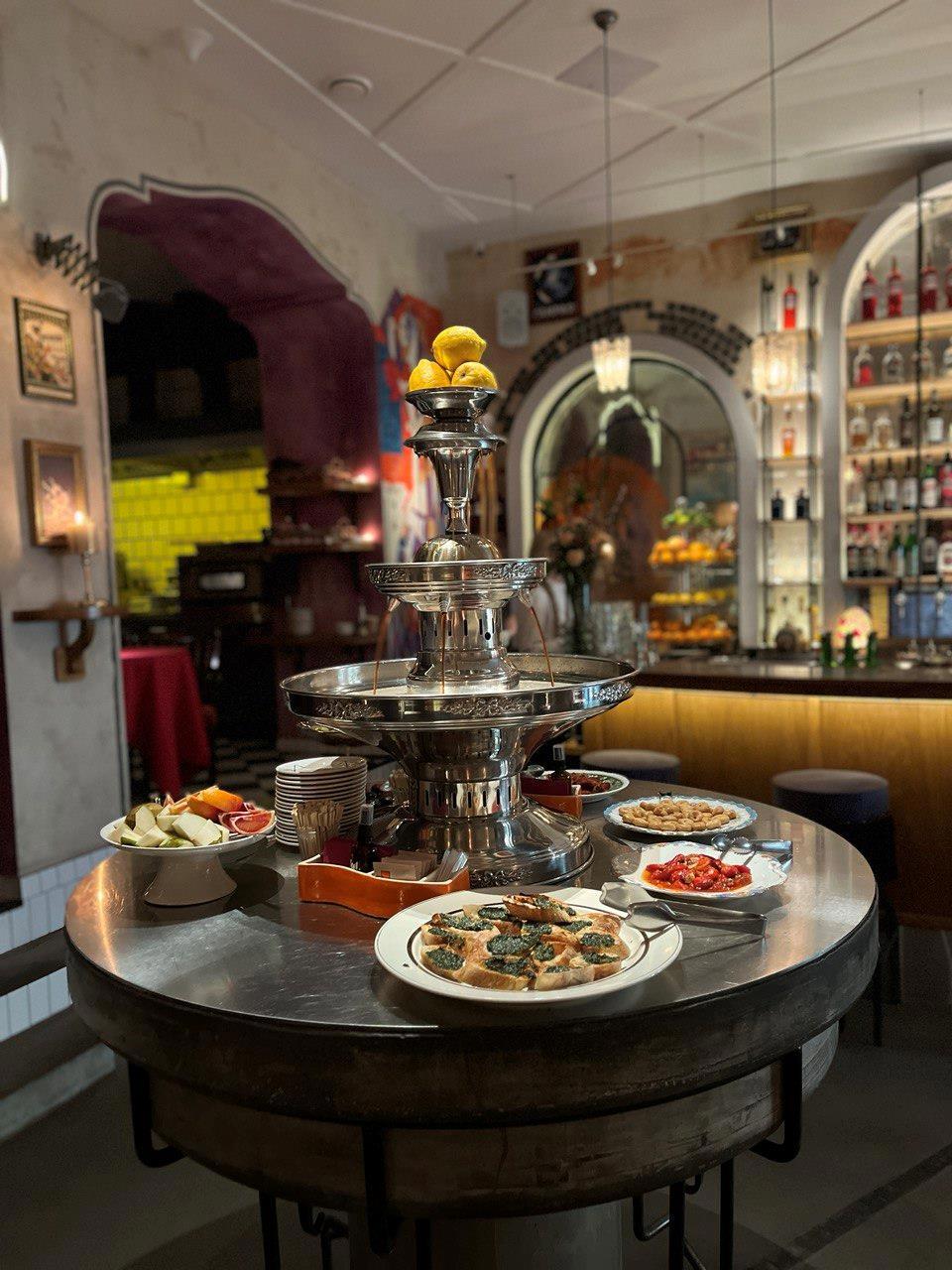 В центре бара "Тальятелла кафе" располагается фонтан с негрони.