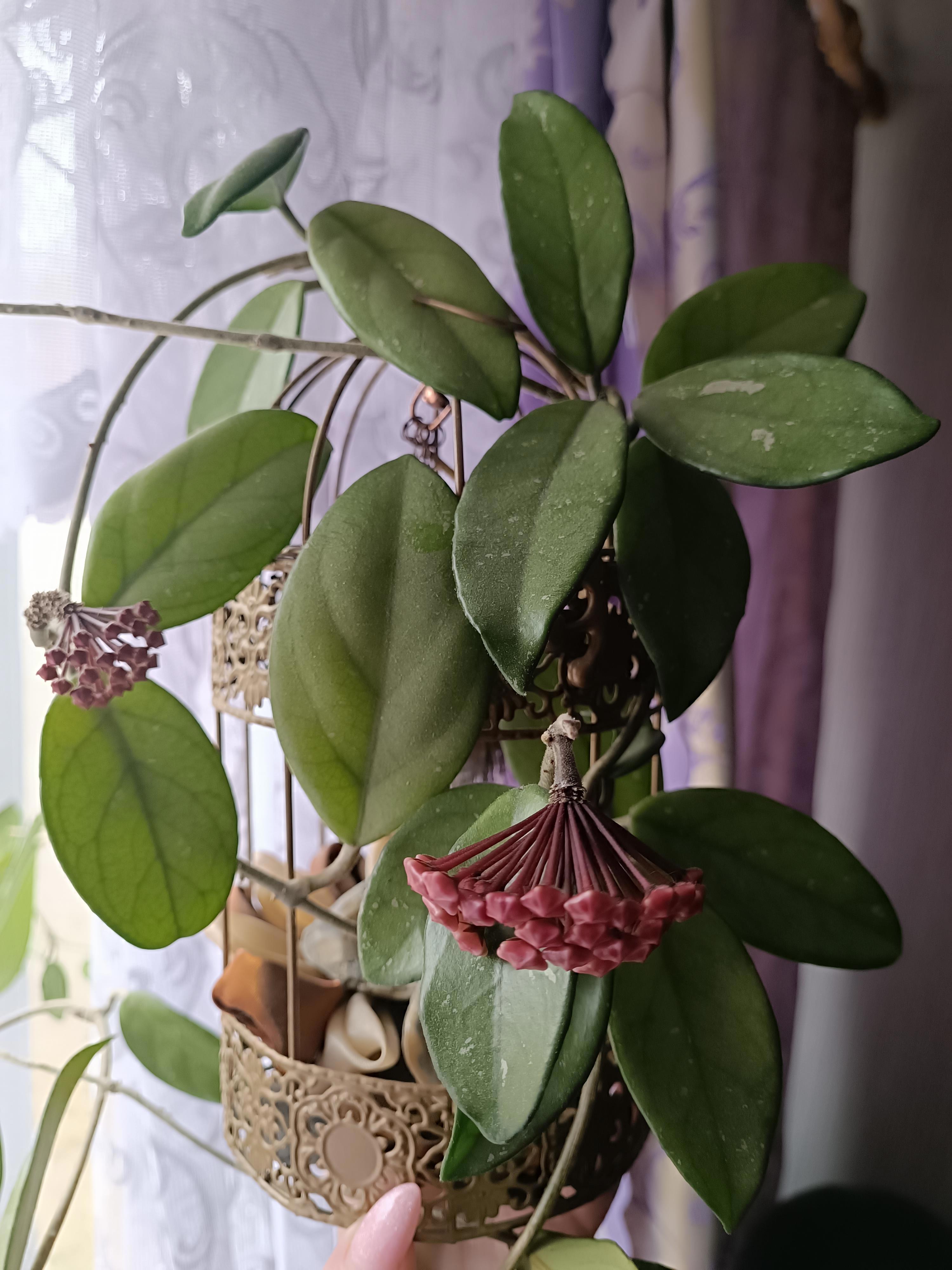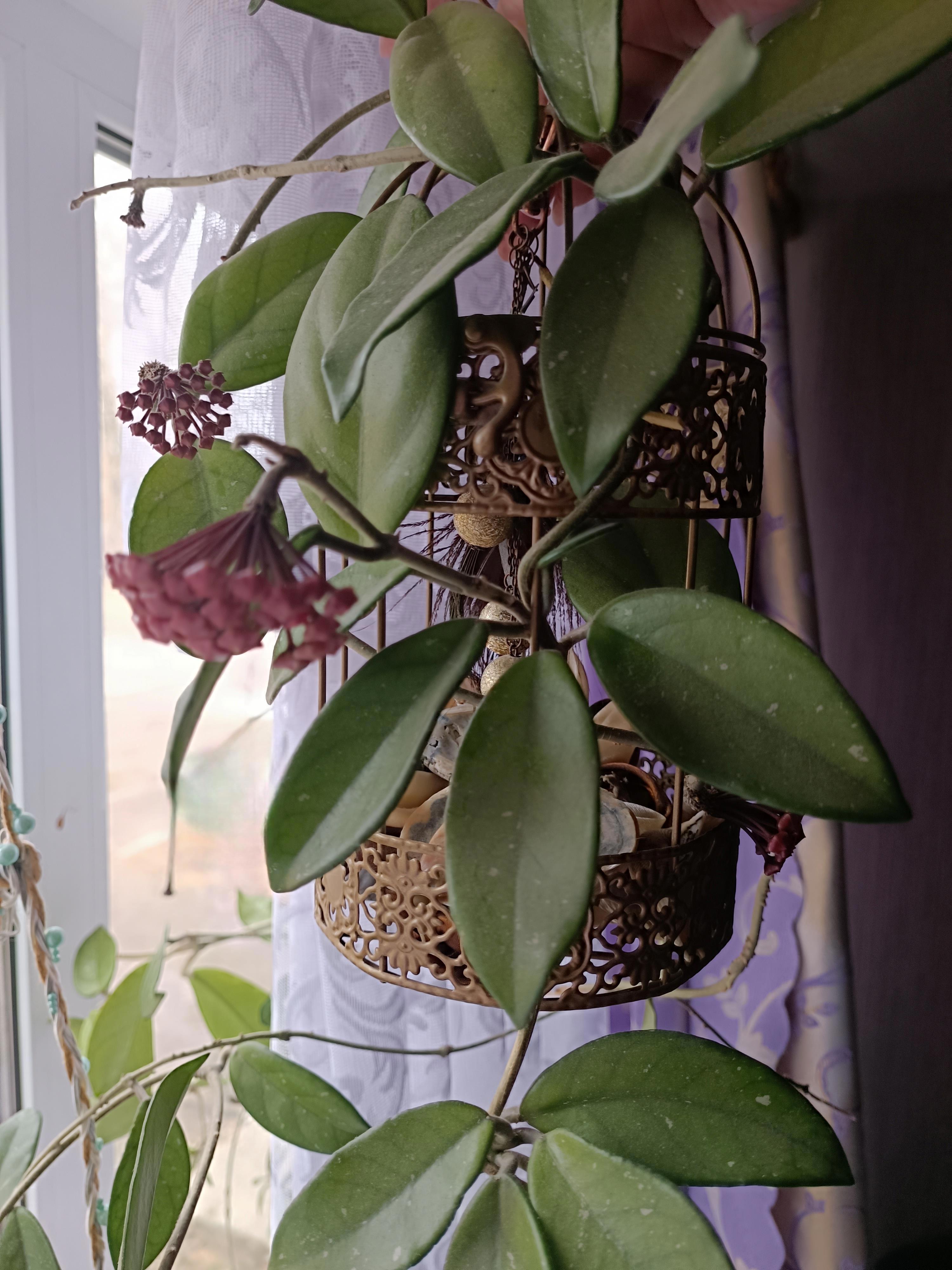Ещё есть птичья клетка побольше. У меня были на неё планы, я уже начала даже её украшать. Внутри висит павлинье перо и золотистые шары.. но у хойи (это цветок такой) оказались свои планы)