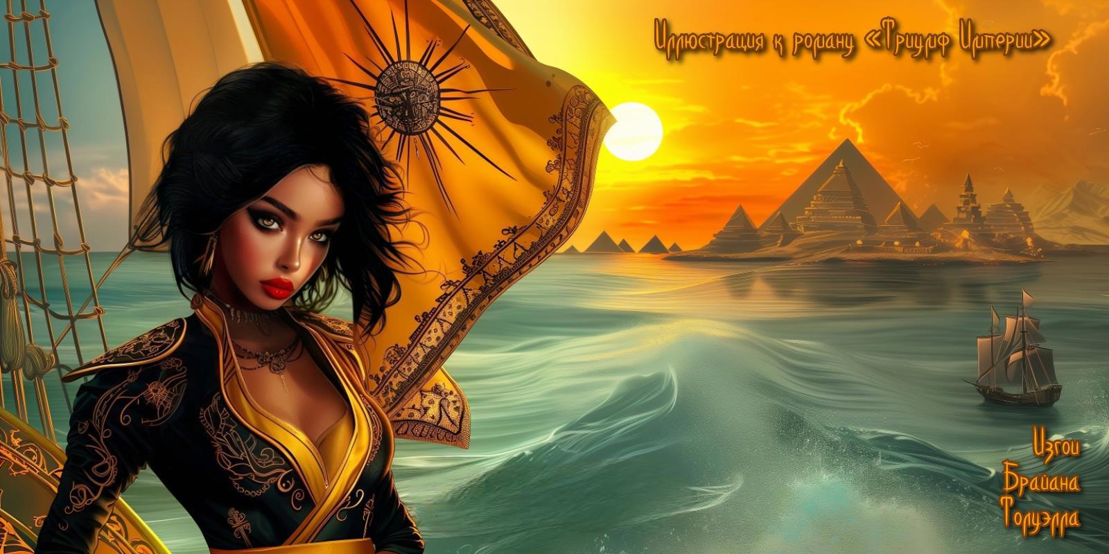 А это уже Стигия, как нетрудно догадаться по пирамидам. Символ на стяге тот же - всё остальное изменилось. Камия теперь императрица Мефрес. Темпераментная дочь морей по-прежнему не любит страну песков, пирамид и адептов мрачного Сета, и уж точно не горит желанием править ею, восстанавливать её из пепла и руин... после всего, что случилось со Стигией в толуэлловском цикле. Но придётся.