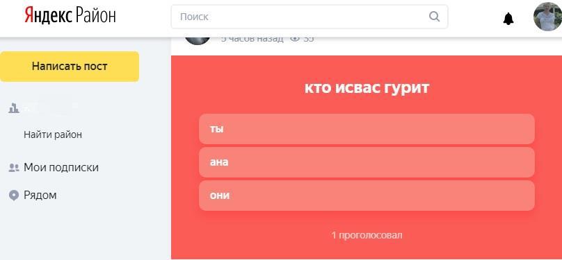 Автор: Вес-На Ларина-Открываю "Новости района" в "Яндексе" и вижу такой опрос: