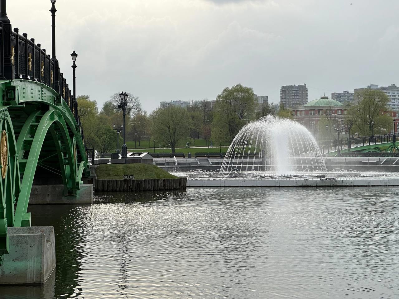 И вот, наконец-то я нашел то, что искал! В Царицыно оказалось очень круто. Совсем уже зеленый парк, где кроме пешеходных дорожек, есть еще и отдельные танцевальные площадки, на которых танцевали пенсионеры. Так же там в целом было красиво. Настолько, что кто-то нетерпеливый уже играл там свадьбу. Какие-то школьники приехали на экскурсию, и бегали в разные стороны по парку. Смог увидеть тестирование фонтанов, на которое не смог попасть в Питере, различные оранжереи.