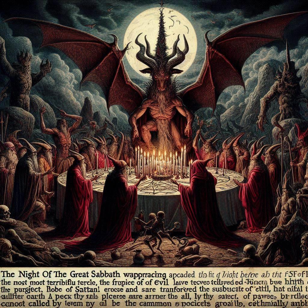 "Приближалась ночь Великого Шабаша. Ночь накануне первого мая называется Вальпургиевой; в это время самые страшные силы зла покидают ад и переносятся на Землю, а все подданные сатаны собираются вместе, чтобы предаться таким отвратительным занятиям и таинствам, что их даже невозможно назвать обычному человеку."