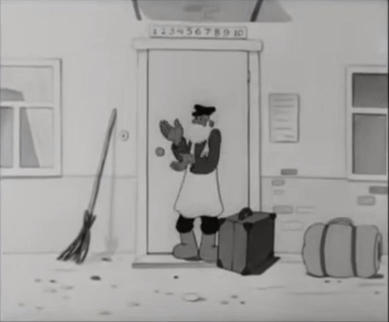 Ну и помучился я с этой сценой! Походка человека вообще трудна в анимации, да ещё если персонаж шагает на зрителя. Мне бы и сейчас далось это нелегко, а тогда и говорить нечего: месяц просидел, не отрываясь от стула. Но то были мучения совсем иного рода, чем с утёнком, которого я просто не чувствовал. А дворника я ощущал всем телом, на время даже стал им самим.