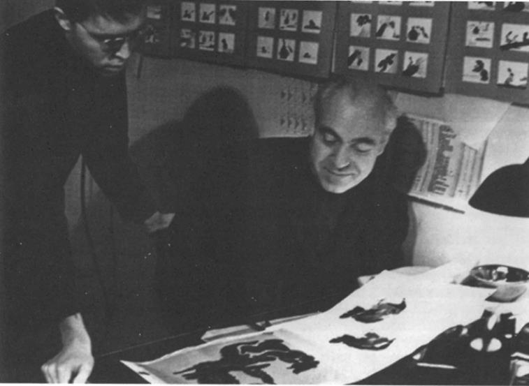 Сергей Алимов и Фёдор Хитрук обсуждают эскизы к мультфильму «Топтыжка» (1963)