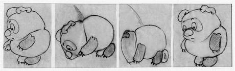 Я буквально несколько лет ходил вокруг этого «Винни-Пуха» и думал, как можно перевести всю непередаваемую прелесть языка в другое качество. Чтобы эта прелесть, эта аттрактивность шла бы уже не от словесного материала, не от текста, а от изображения, от поведения этих героев. Например, там есть такие места: «Винни-Пух, ослик Иа и Пятачок сидели как-то на пороге дома и слушали, что говорит Винни-Пух». Это такая наивная нелепость. В этой наивной нелепости есть своя прелесть. Если хотите, своя мудрость, своё целомудрие. Там много таких моментов.