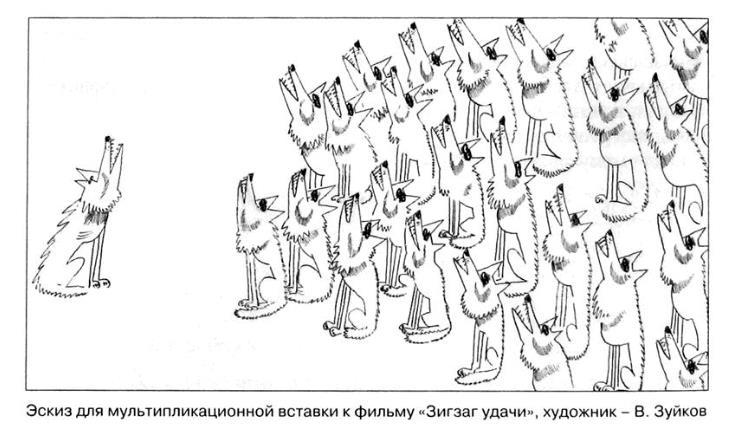 В производстве рисованного фильма интервал между сдачей сцены и её просмотром на экране довольно велик: пока сделают промежуточные фазы, пока снимут и проявят плёнку — проходит неделя, а то и больше. Мне этот интервал казался вечностью. Со страхом и нетерпением бродил я по студии, не находя себе места, точно будущий отец, томящийся под окнами родильного дома.