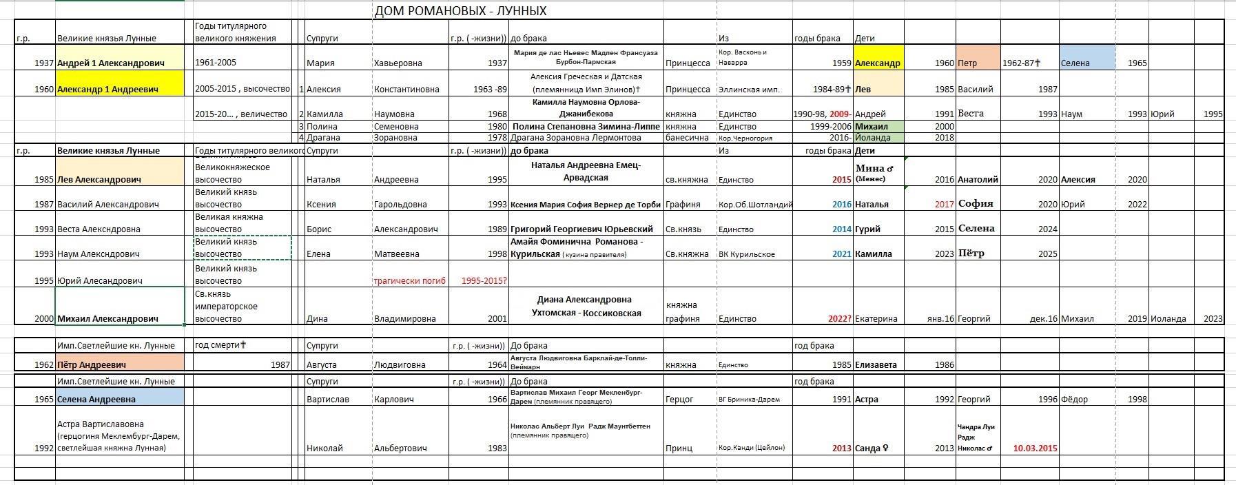 3. Ближайшие родственники по отцу (Романовы-Лунные) главного героя (рабочая версия):
