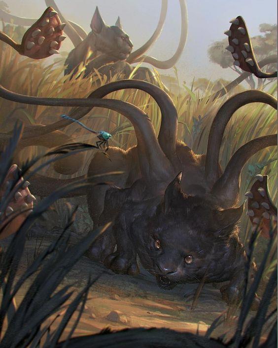 Выглядит как черная шестилапая пантера с растущими из спины щупальцами. Найлз (или переводчик) умалчивает про шесть лап, но зато добавляет, что зверь размером с лошадь.