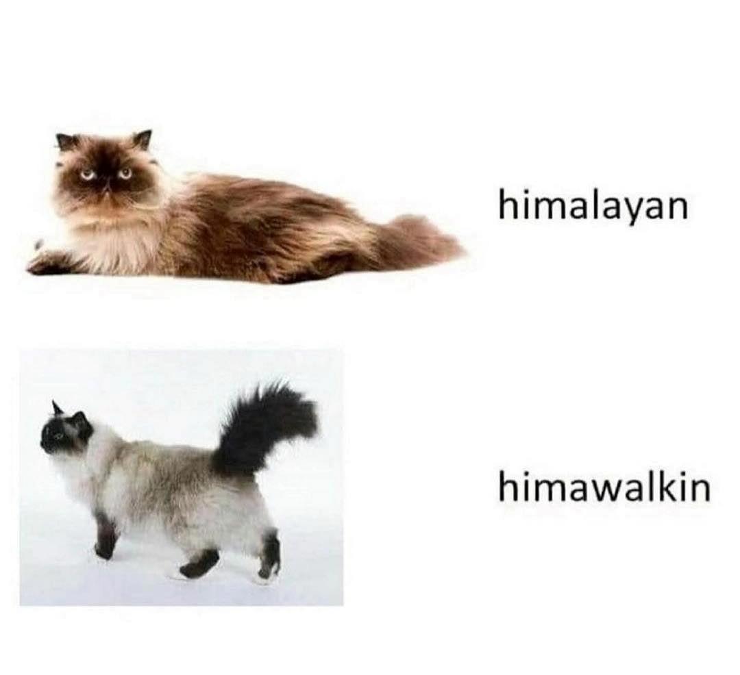 himalayan = порода кошек, him a laying = он лежит, him a walking = он идет