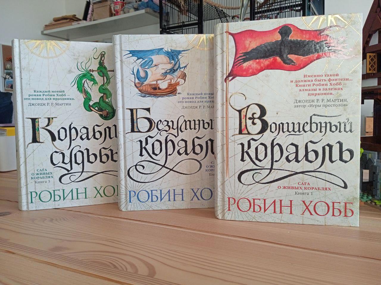 Эпическое фэнтези в очень красивом оформлении, с хорошим переплётом, белой бумагой и оформлением для всех циклов автора в одном стиле. Если вы не знали, то сейчас говорю: у Робин Хобб несколько фэнтези-циклов во вселенной Элдерлингов - авторском мире аля-средневековье с магией и драконами. «Сага о Видящих», «Сага о живых кораблях», «Сага о Шуте и Убийце», «Хроники Дождевых чащоб» и «Сага о Фитце и Шуте» - в таком порядке идут циклы, но в целом, как я понимаю, их можно читать и отдельно. Меня когда-то заинтересовали именно истории живых кораблей, и остальные циклы я не читала, потому как с книгами этой писательницы броманса у меня не случилось.