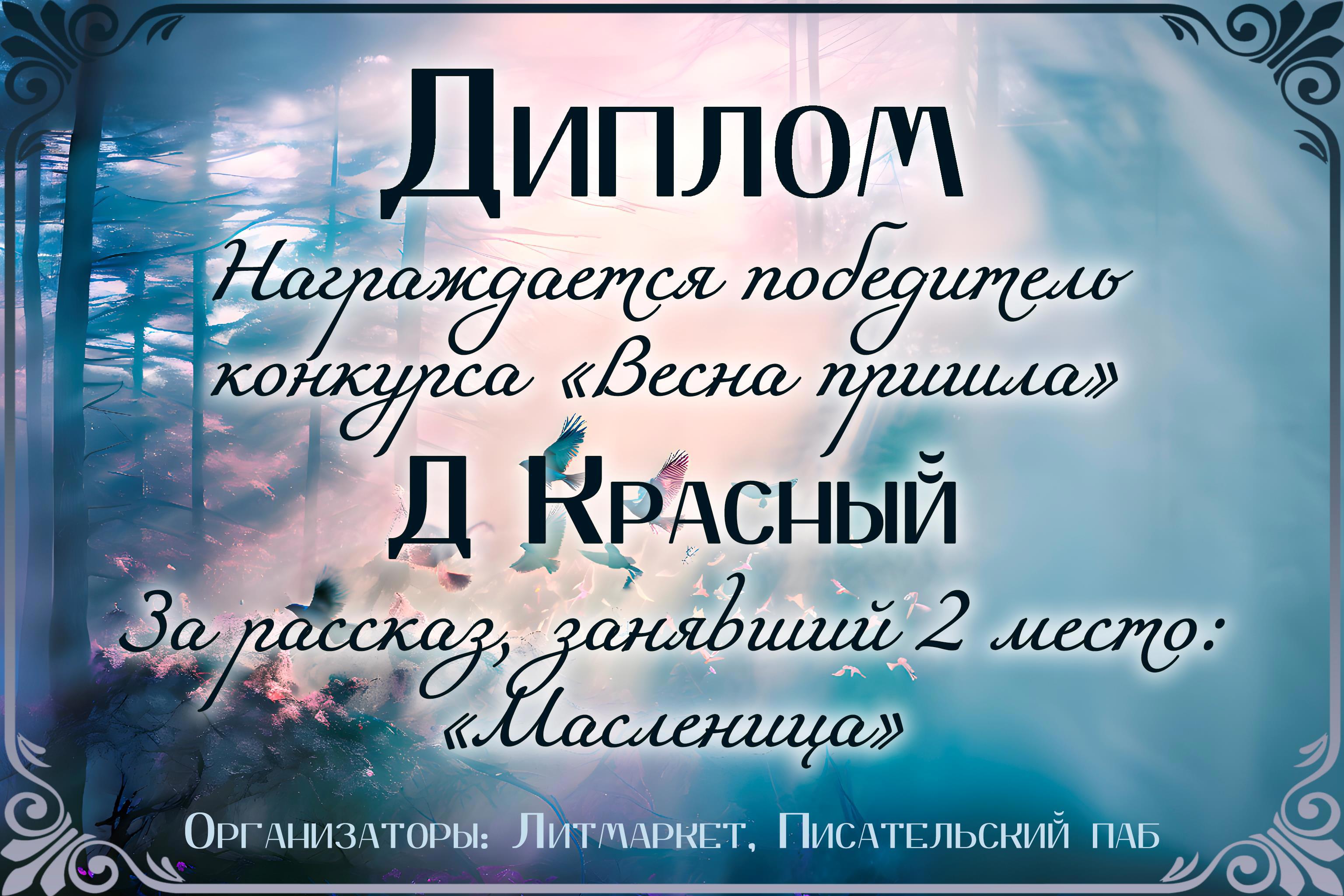 Автор: Джаркен КрасныйВозможно, кому то это покажется мелочью и даже смешным. Но... это моя первая награда, первое авторитетное признание: