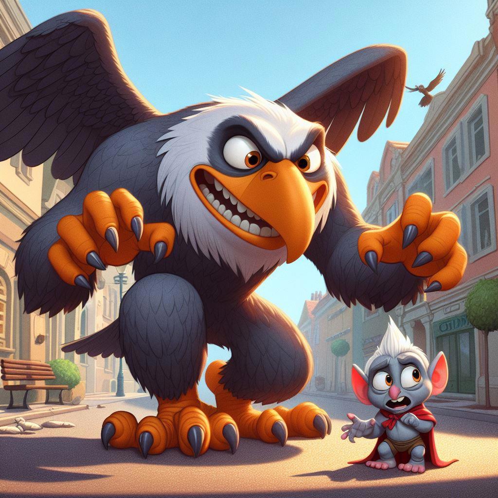 Орел, как молния с неба, падает на хронопа, гуляющего по главной улице Тиногасты, припирает его к гранитной стене и надменно говорит.