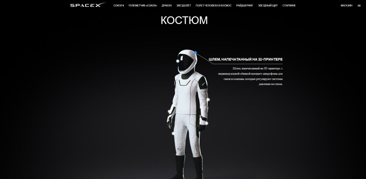 Во время полетов на ракетах Dragon и Starship туристам будут предоставлены скафандры, сенсорные перчатки и напечатанные на 3D-принтере шлемы