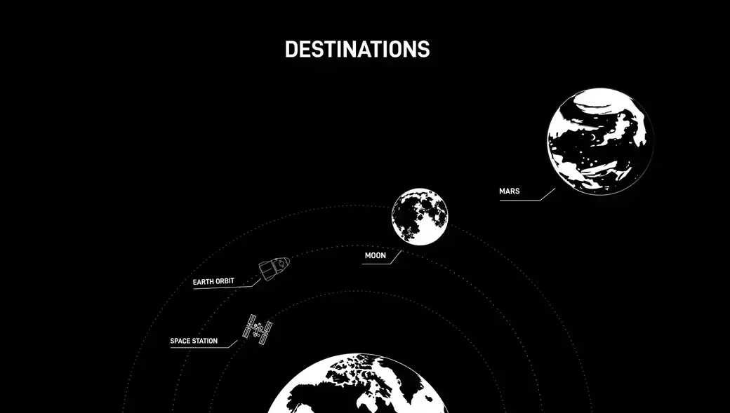 Для желающих будут доступны четыре направления: до орбиты Земли, Международной космической станции (МКС), Луны и Марса.