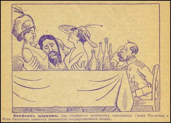Просто поразительно, как плохо работала пресс служба царя, если его смогли выставить, как алкоголика. И по тому, как легко удалось убедить в этом население, приходится верить, что если бы не было Распутина, то с такой же непосредственностью раскрутили бы другой миф. С выдумками даже на пустом месте проблем у агитаторов не возникало. Про то, что Распутин спит с царицей и дочерями царя это же голимый вымысел.