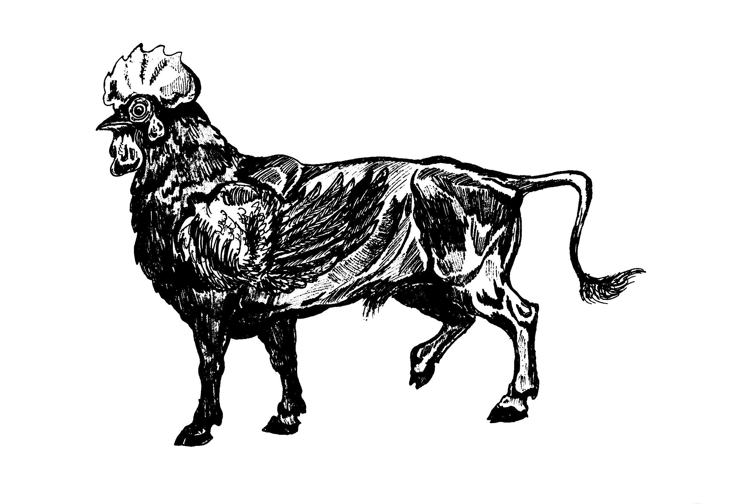 Ну, или куротура - быка с петушиной головой и недоразвитыми крыльями. Внутри пышного гребня на голове прячутся острые костяные шипы, обнажаемые во время нападения.