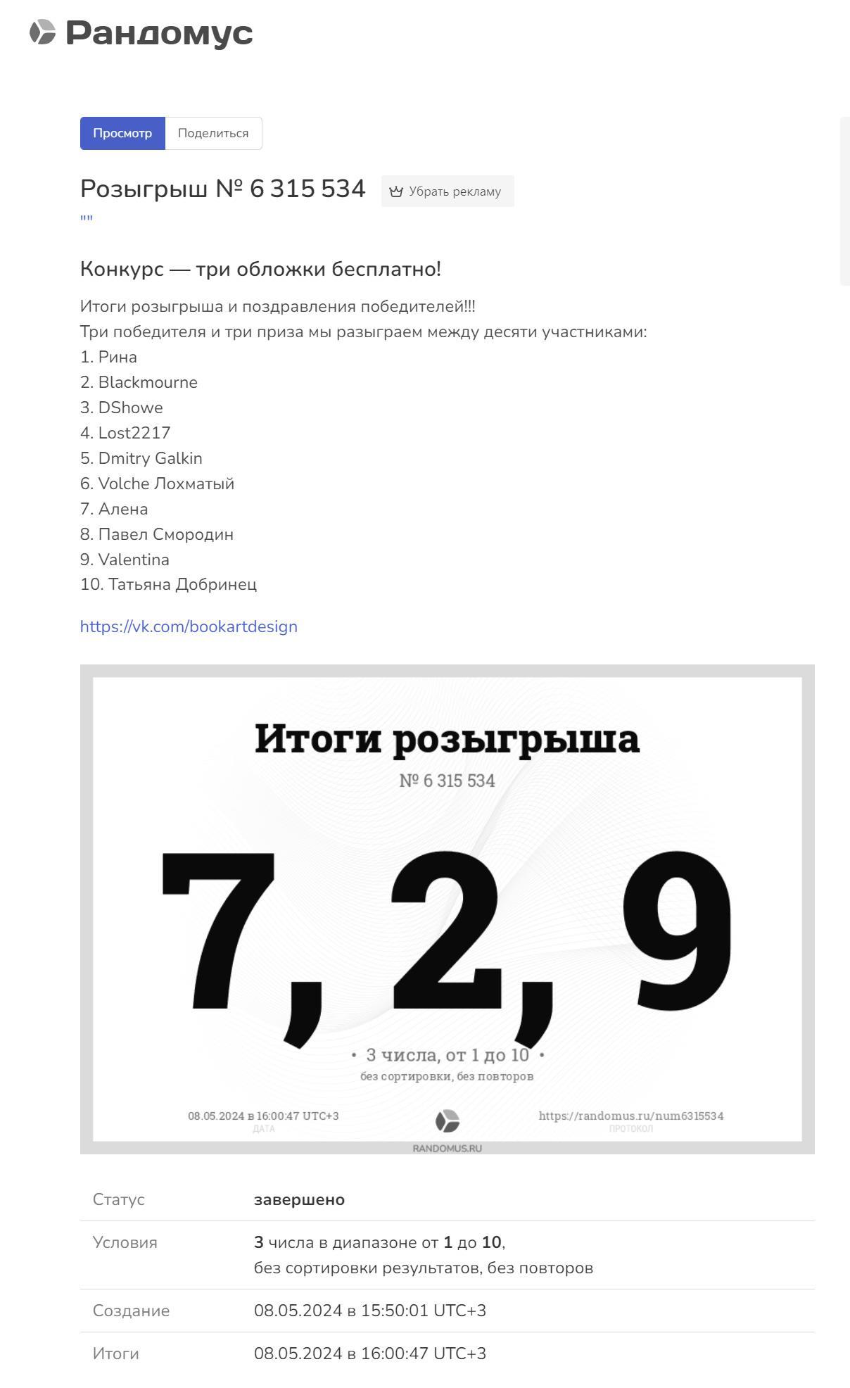 По итогам розыгрыша: