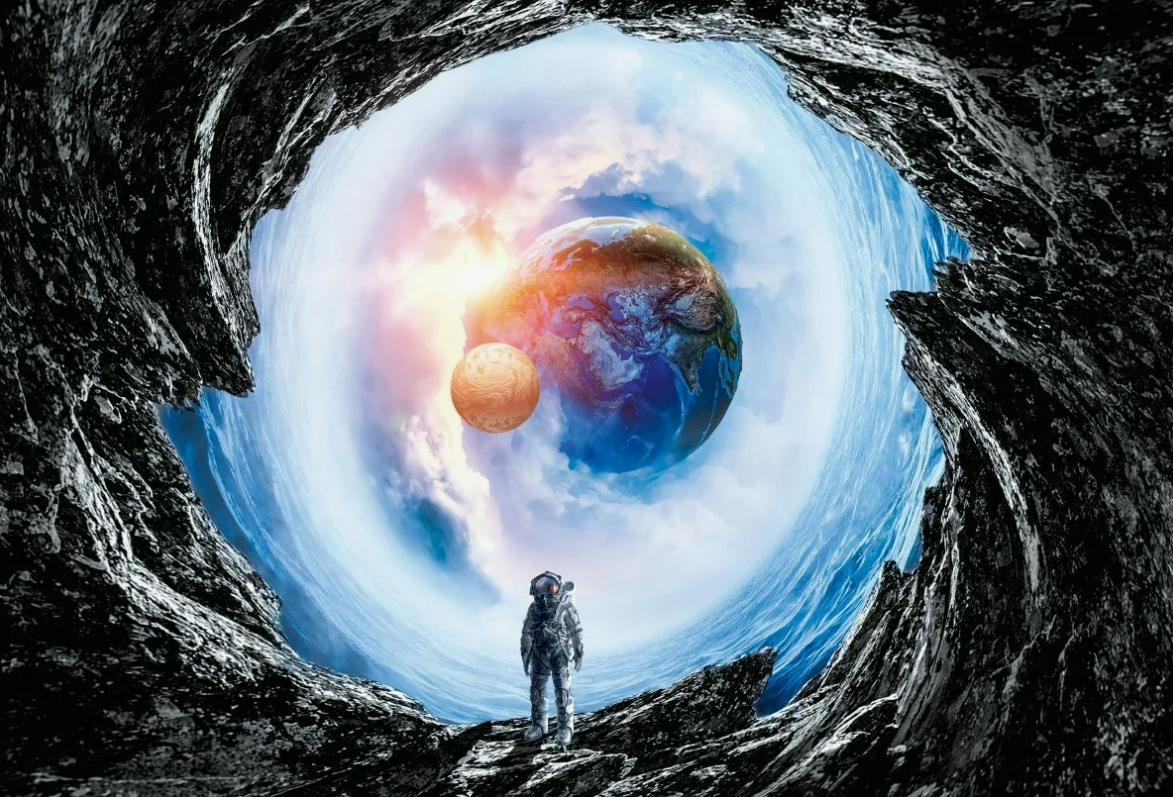 Перед ними был океан воды. Огромный голубой шар, будто планета, раскинул свои водные просторы во все стороны на километры. Туманная дымка размывала изображение вдали. Зеленая сферическая поверхность стен грандиозного помещения, уходила параллельно голубой водной поверхности также вдаль и постепенно исчезала во влажном мареве. Между водой и “потолком” было метров сто. Пятеро людей сейчас висели возле океана, распростершегося под, над или перед ними - в невесомости это не имело значения. Ветер медленно сносил людей в сторону от выхода из пещеры. Поверхность океана колыхалась. В воздухе стоял запах водорослей. Этот огромный океанический водный шар диаметром под сотню километров, несомненно, имел собственную гравитацию, пренебрежительно маленькую, чтоб человек мог ее ощутить.