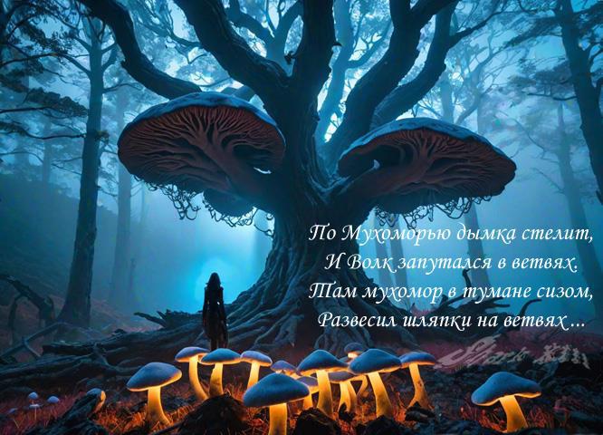 По Мухоморью дымка стелит, И Волк запутался в ветвях.