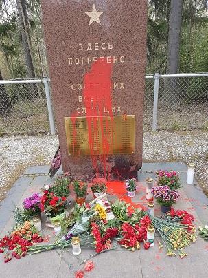 Хельсинки, памятник советским военнопленным, погибшим в плену в Финляндии. Сегодня утром залит краской. Местная полиция работает.