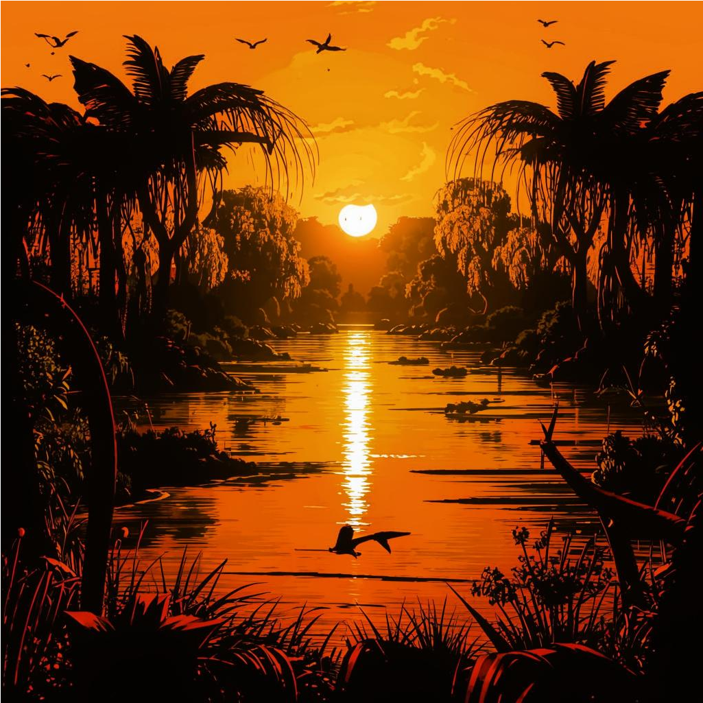 Автор: Павел МарковСолнце село нижним краем за джунгли. Трель кузнечиков стала отчетливей. Вдали прорычал синха. Сгустились длинные тени.