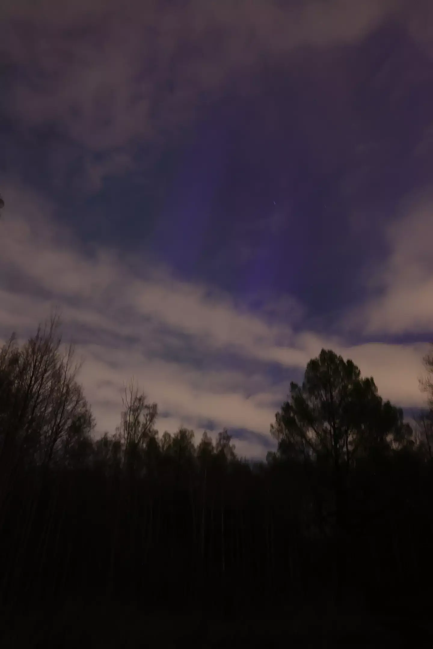 Ложилась спать, листала ленту, тут в группе астро алерт пост: третья волна северного сияния пошла. Я секунду подумала, выбирая, остаться в тёплой постельке или бежать на улицу и побежала.