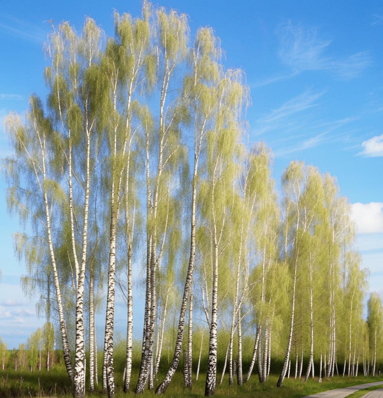 Смешанные деревья скоро остались позади, уступив место довольно густой берёзовой роще. Острые лучи выхватывали из темноты белые стволы и длинные гибкие ветви, свисающие почти до земли.