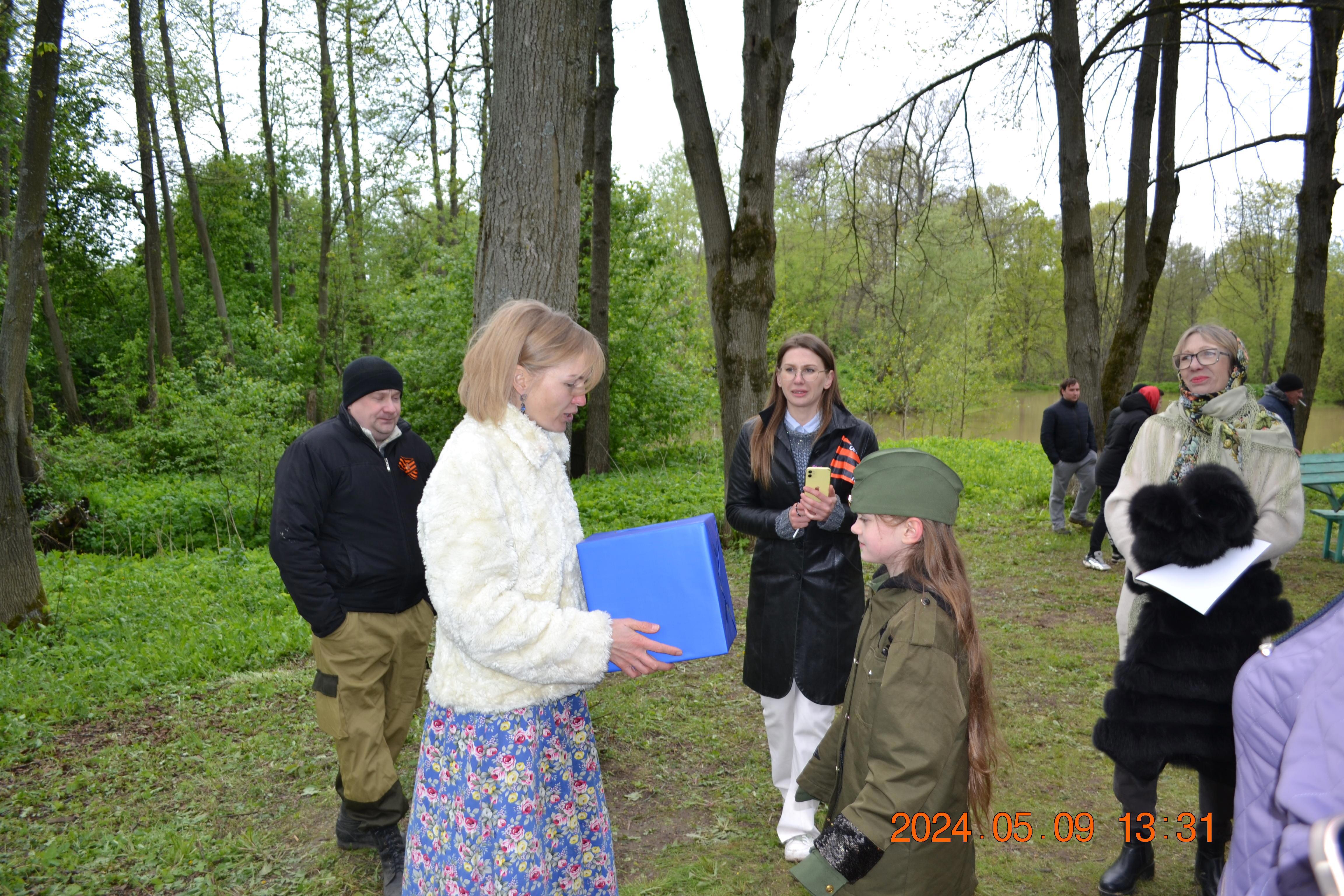 На празднике присутствовали волонтеры из организации "Горячие сердца". Дети передали волонтерам письма солдатам на фронт. Также была передана гуманитарная помощь от жителей деревни.