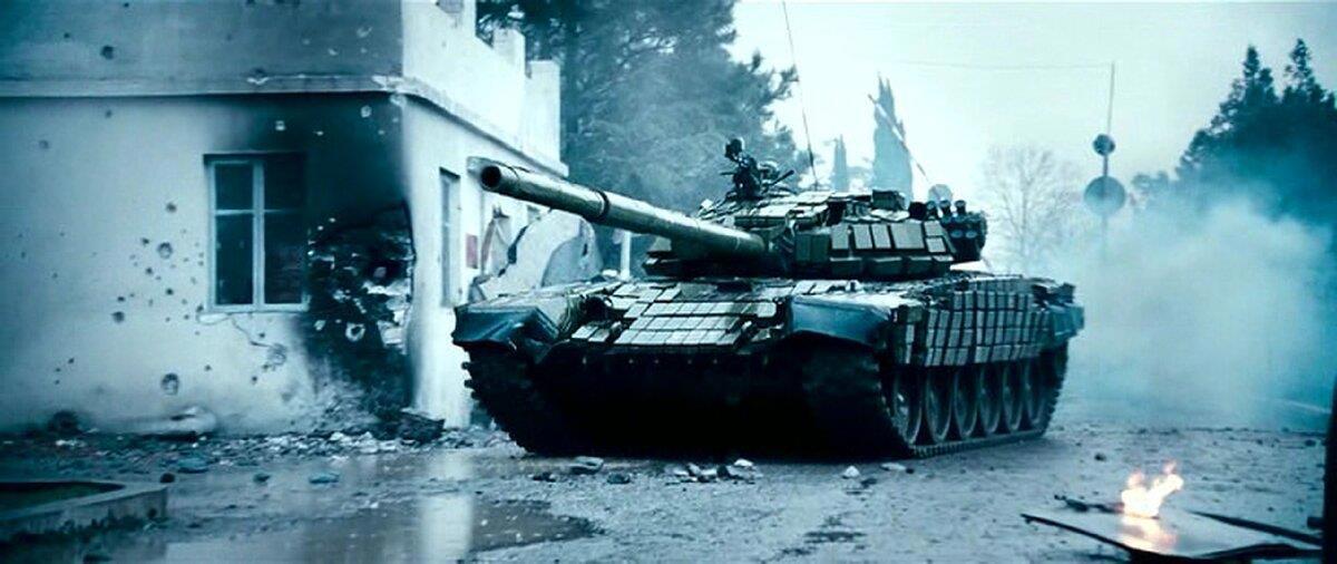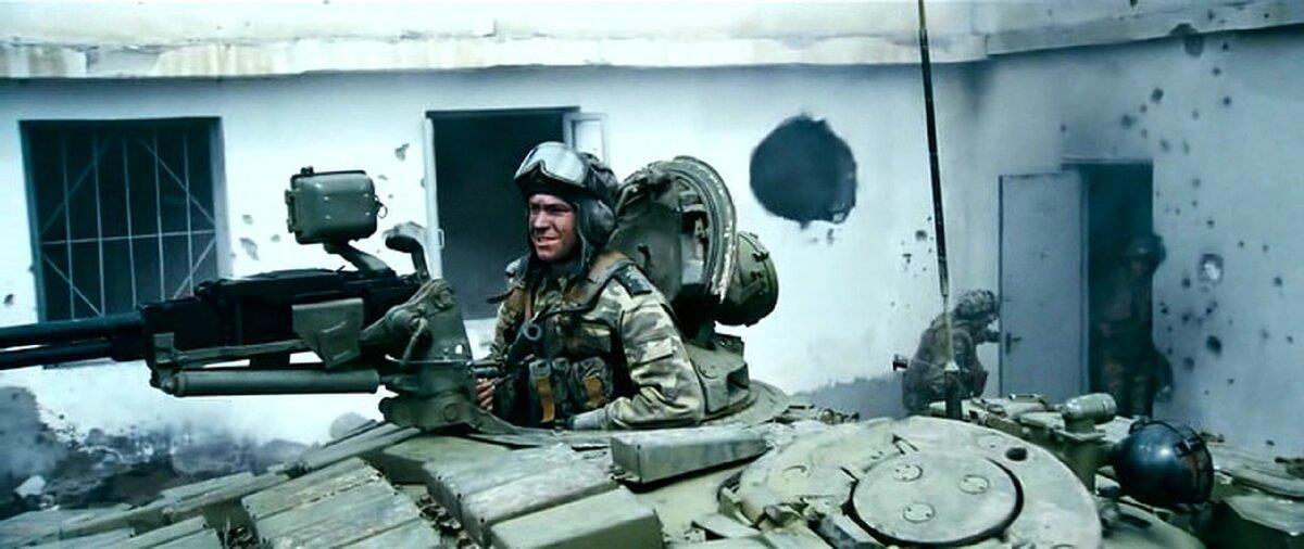 Такой же Т-72Б фигурировал в фильме "Август. Восьмого" (кстати, это была первая мало-мальски заметная роль в кино всем известного Петрова, не считая эпизоды во всяких "слепых гадалках"):