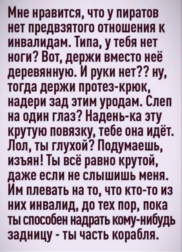 Автор: Максим МарининМолодой пират подходит к капитану Флинту и говорит: