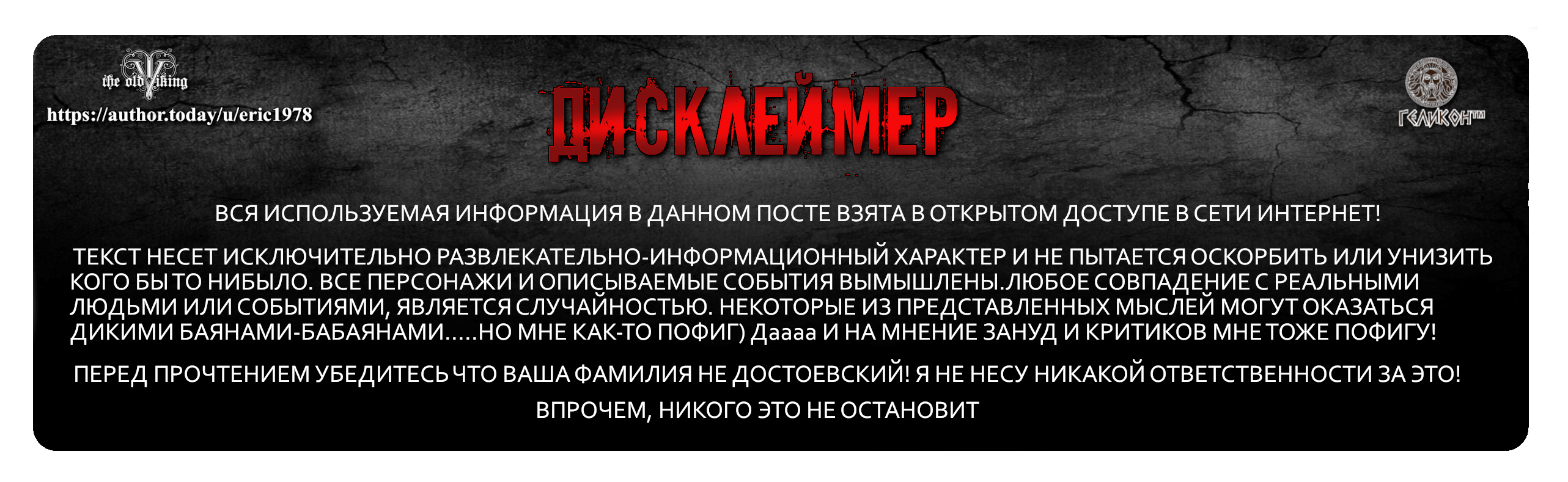 Многофункциональный Дисклеймер, который можно (а по нынешним временам даже и нужно, наверное) помещать перед любым художественным текстом длиннее двух строчек. Его можно использовать перед рассказом, повестью, романом, стихотворением, перфомансом и онлайн-тестом.