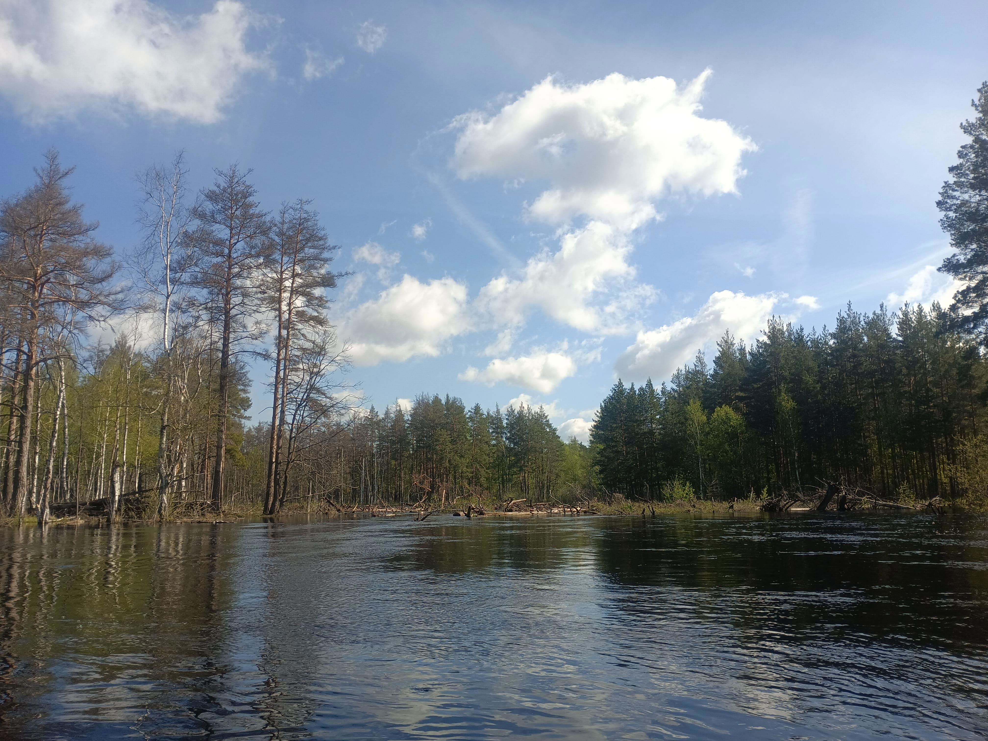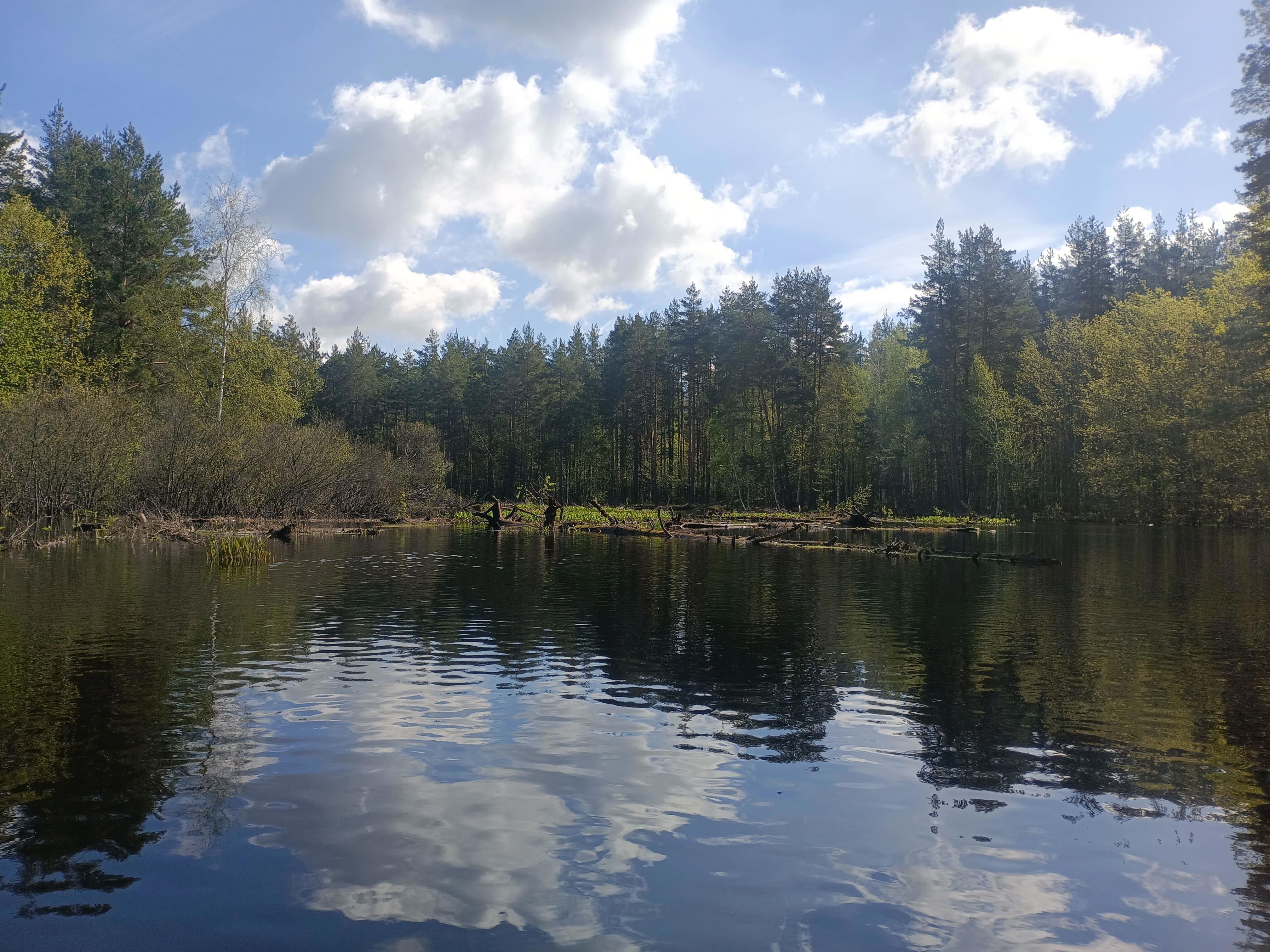 Расплатились с вымогателями и отчалили. Тепло, хорошо, к обеду так начало жарить, что пришлось раздеться до трусов. По итогу, аж сгорел и облез, потом пугал коллег своей шелушащейся лысиной разбрасывая свою чешую по всему офису. Но это было несколько позже, а там, на реке, был несколько разочарован. Прочитав описание маршрута, ждал красивейшие места, а по факту - плоские однообразные берега и затопленный лес. На том же Лухе, в Ивановской-Владимирской области, места сильно интересней. Блин, да даже Москва-река интересней.