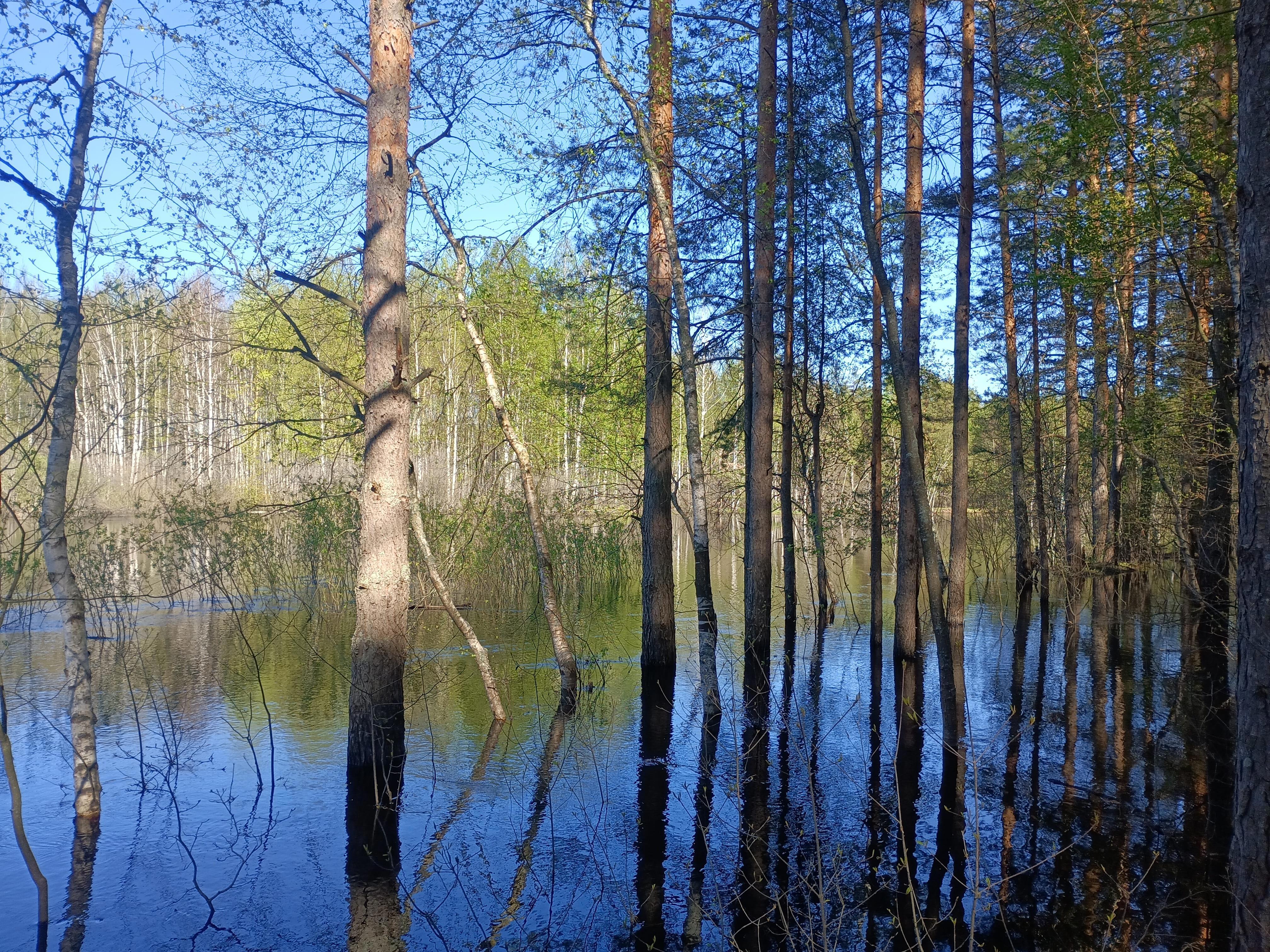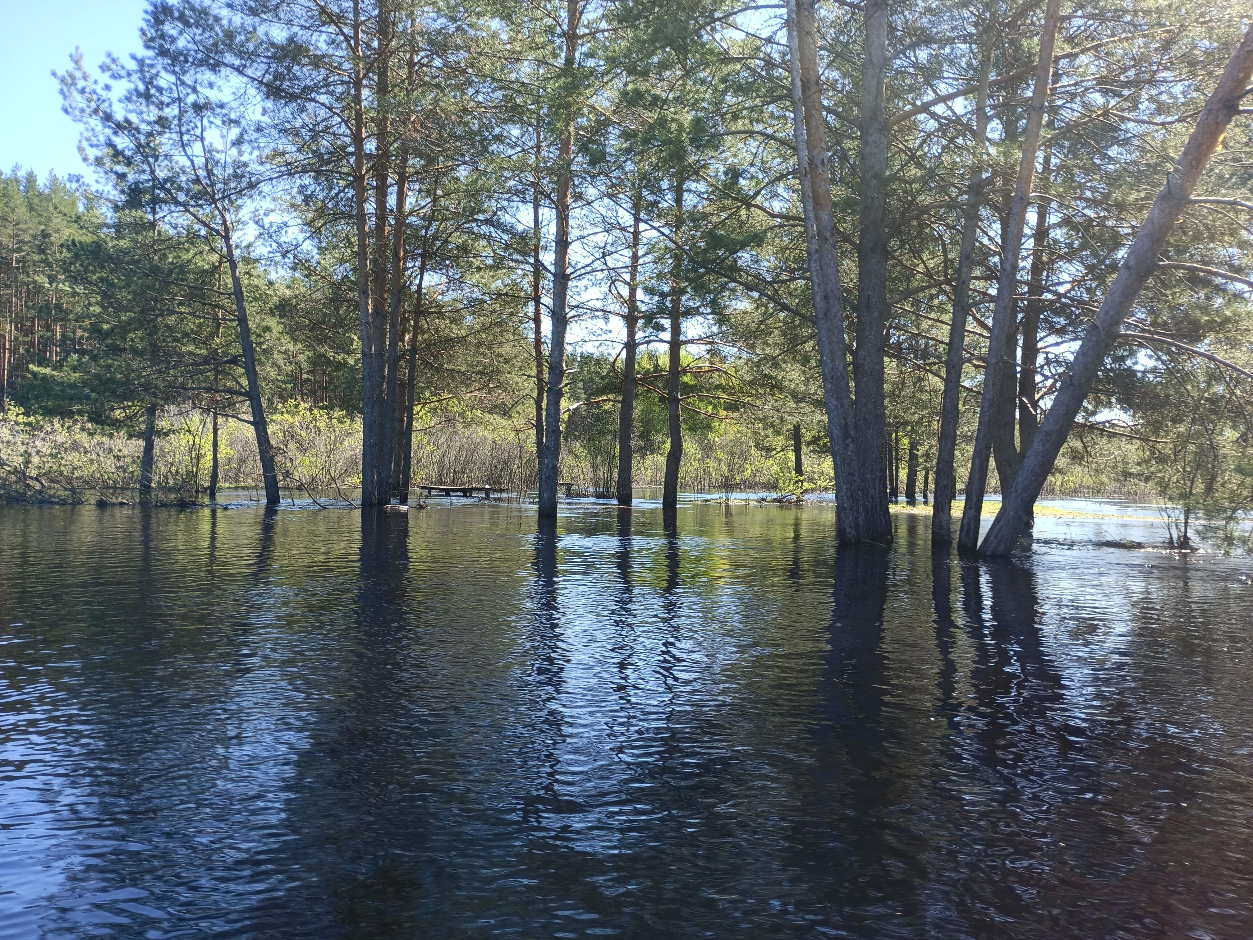 Погода прекрасная, даже вода прогрелась до такого состояния, что в пьяном виде можно искупаться, что некоторые товарищи и делали. Большая вода ещё не сошла и путешествие было забавным, в некоторых местах можно было попетлять между деревьев, представляя себя путешественником по мангровым лесам. Но подозреваю, что летом на этом участке реки делать нечего, кроме как работать бурлаком. Если в половодье нет нет да цепляли дно, то летом будешь идти впереди байдарки.